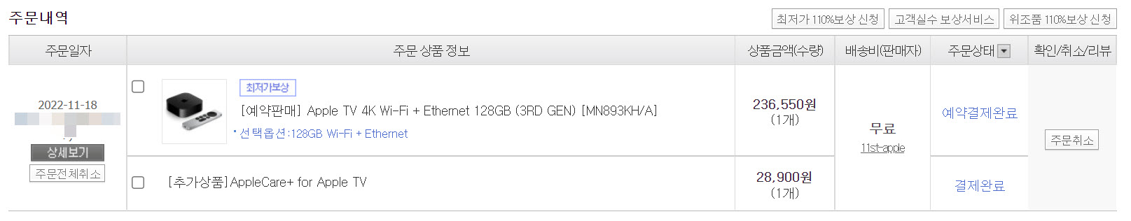 애플티비 구매 완료, Apple TV 4K Wi-Fi + Ethernet 128GB (3RD GEN) [MN893KH/A]
