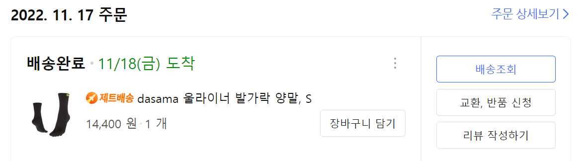일반 양말보다 발가락 양말이 월등히 땀흡수가 좋다는 것을 몸으로 체득했기에 발가락 양말로 구매를 했습니다.