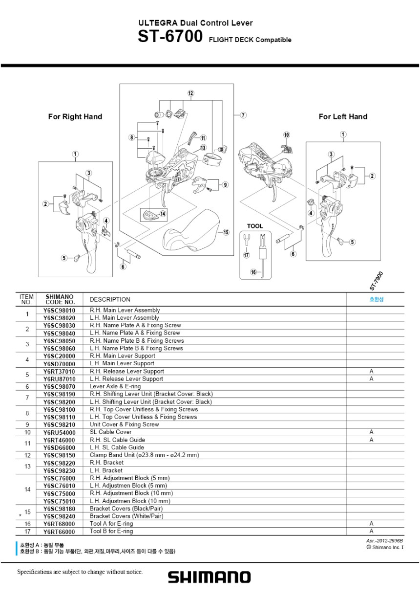 시마노 울테그라 레버 후드 브라켓 커버 세트 ST-6700 Y6SC98180