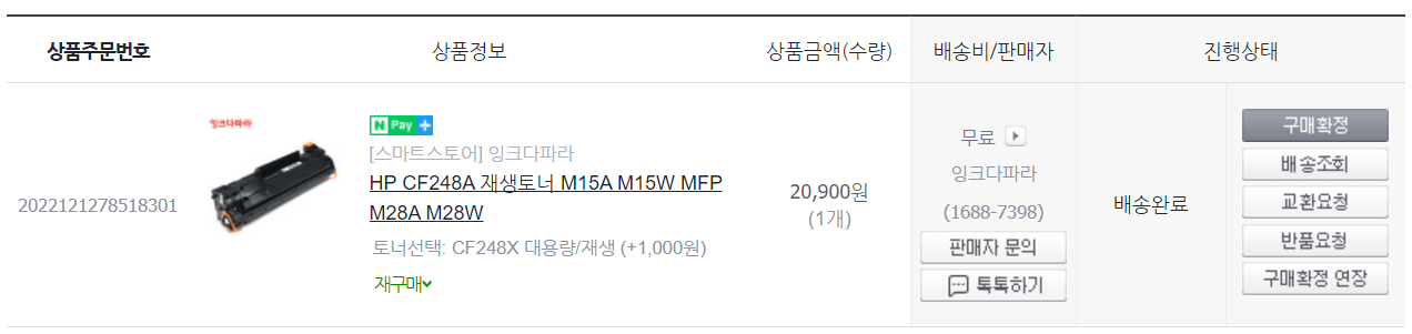 2022. 12. 16: 정품, 재생, 재생, 이렇게 3번째 토너 리필