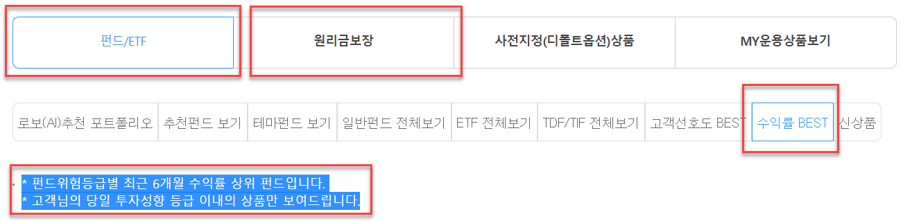 안전자산의 총보수는 0.2% 이하인 것으로 선택(의외로 이런 상품이 없음)