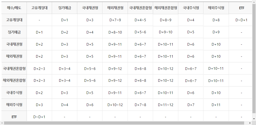 펀드 성격에 따라서 기간이 상이한데요. 대략 7일 정도 소요된 것 같습니다.