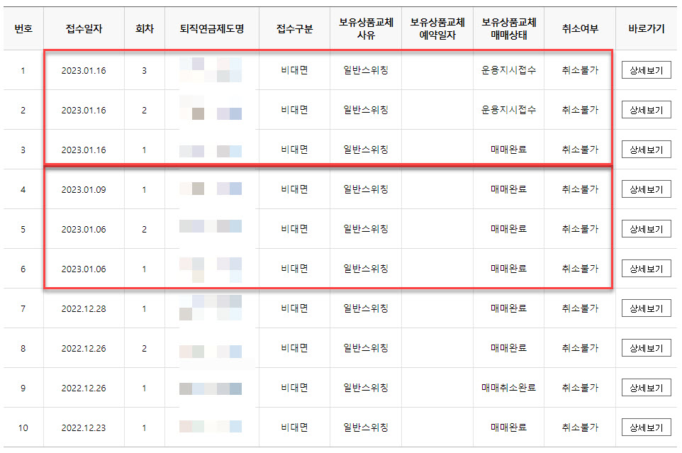 교체 매매가 참 어렵게 되어 있습니다. 퇴직연금과 IRP에서 뭔가 매매하는데 시간도 많이 걸리고 번거로운 것 같아요.