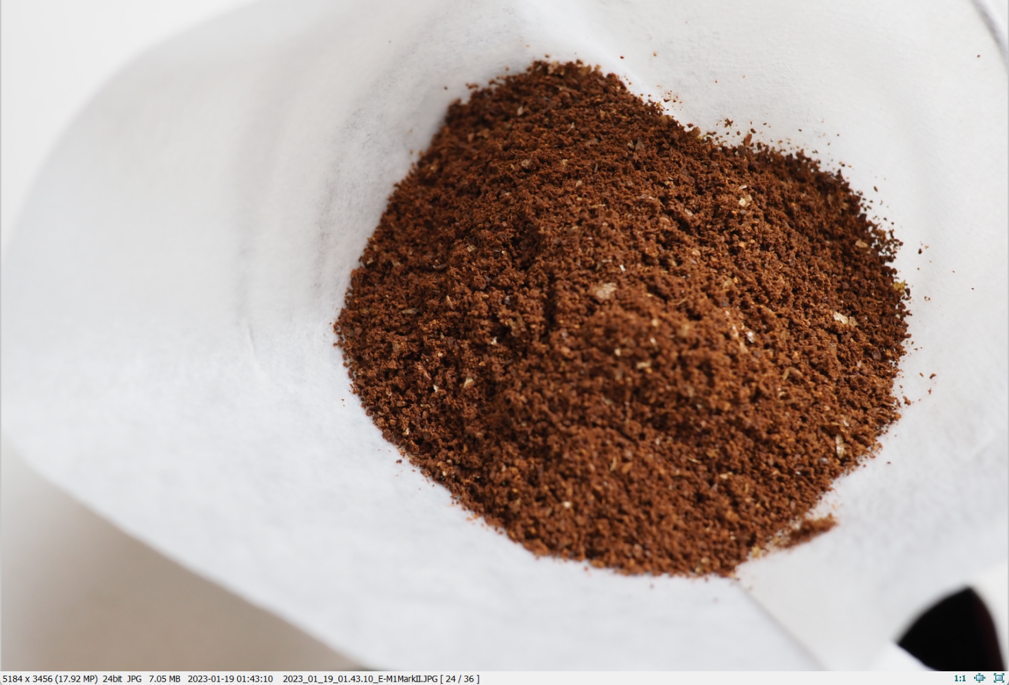 전자동 그라인더로 분쇄한 모습인데요. 드립에는 자동그라인더 보다 수동 그라인더가 더 깊은 맛을 내는 것 같아요.