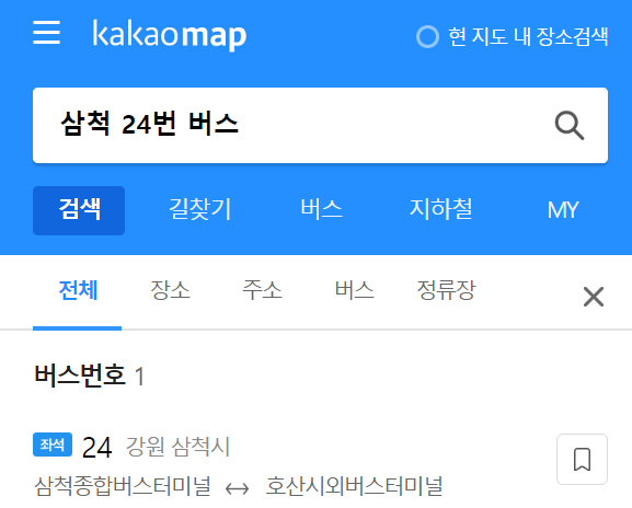 각 출발지의 출발 시각은 정확합니다. 카카오맵에서 ‘삼척 24번 버스'로 검색 하면 실시간 버스 위치와 원하는 곳 도착 대기 시간을 확인 할 수 있습니다.