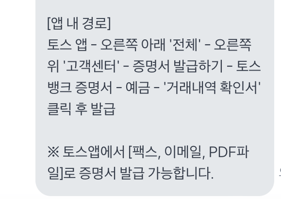 토스앱 - 고객센터 - 증명서 발급하기 - 토스뱅크 증명서 - 카드 - 해당 날짜 증명서 pdf 내려 받기 하면 해당 이력 볼 수 있습니다.
