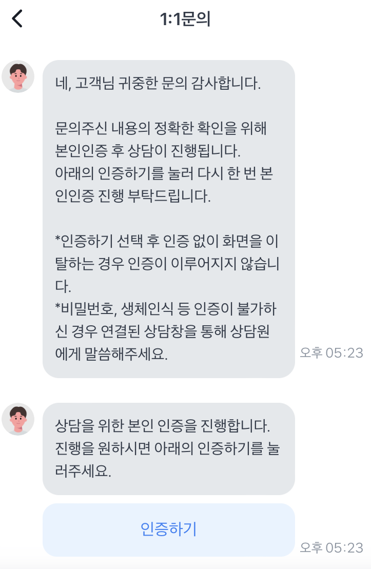 - 토스 앱이 고객센터의 채팅의 1:1 문의로 중복결제 문의