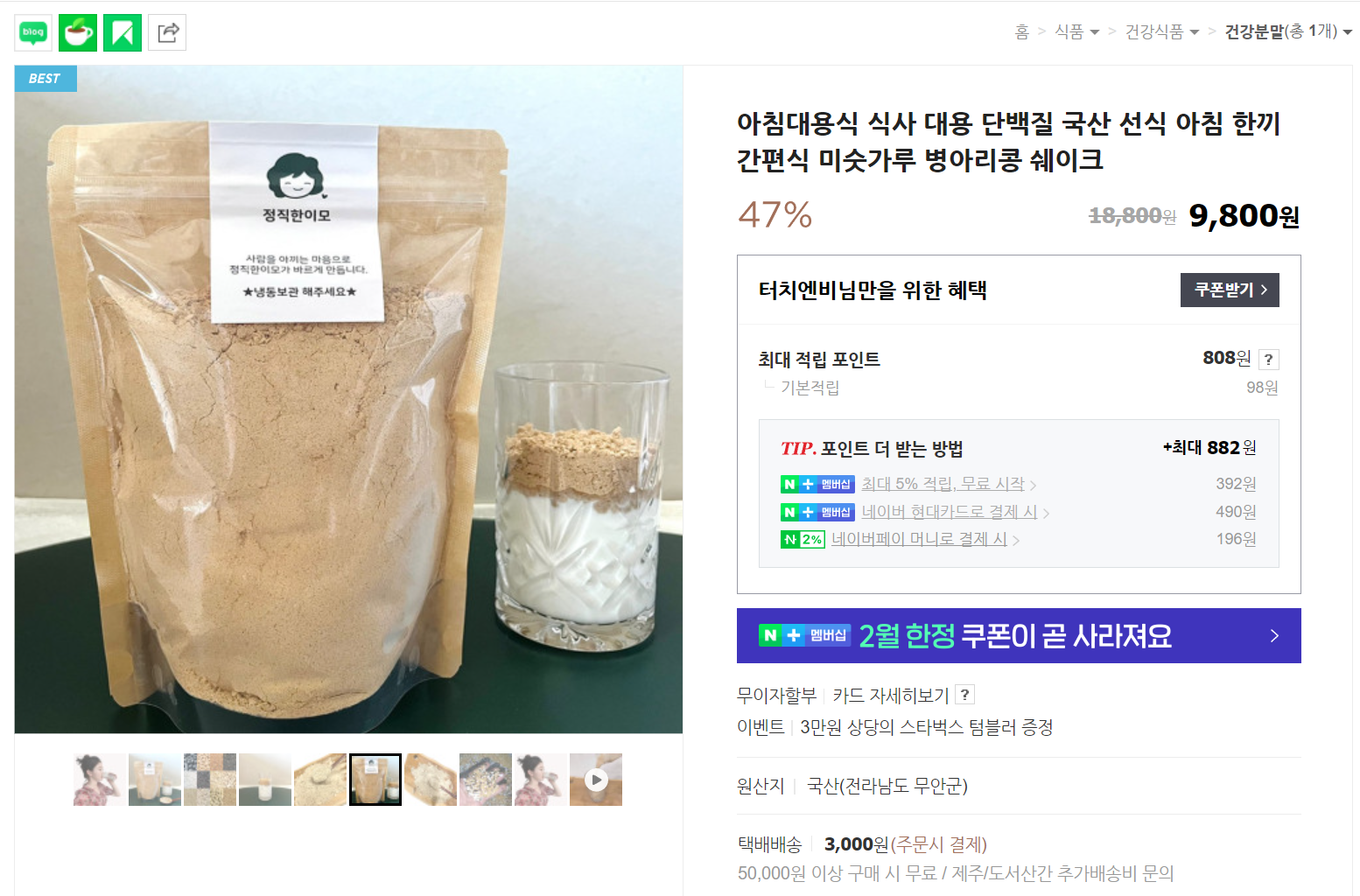 이제 보니 쿠팡에서도 구매가 가능하다. 배송료가 없다. 네이버스토어가 먼저 검색되서 네이버로 구매했다.
