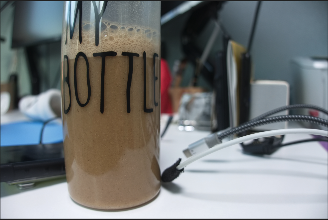 흔들면 금방 섞인다. 그런 후 물을 좀 더 추가 하면 된다. 당일 아침에 제조하면 힘드니 전 날 제조 후 냉장고에 넣고 마셔도 된다.