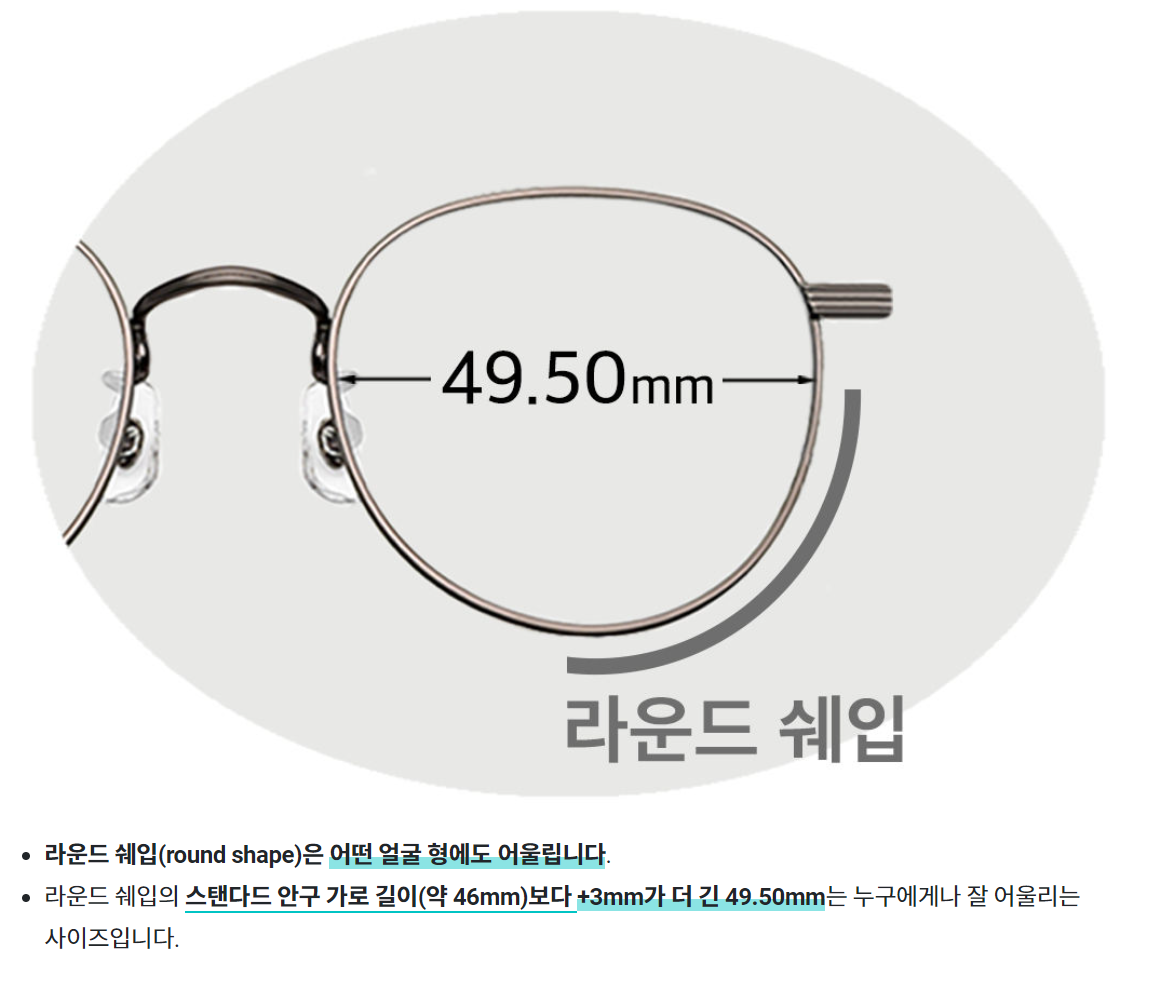 안경 알 하단 디자인은 ‘라운드 쉐입'인가 보다. 누구에게나 잘 어울리지는 않은 것 같다.
