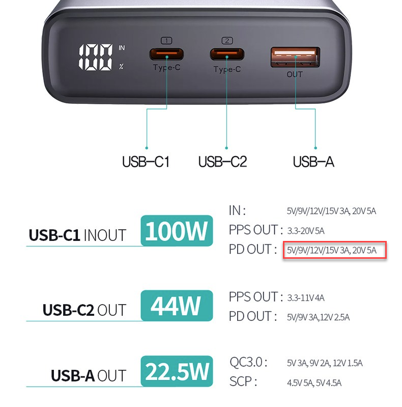 20V / 5A (65W)