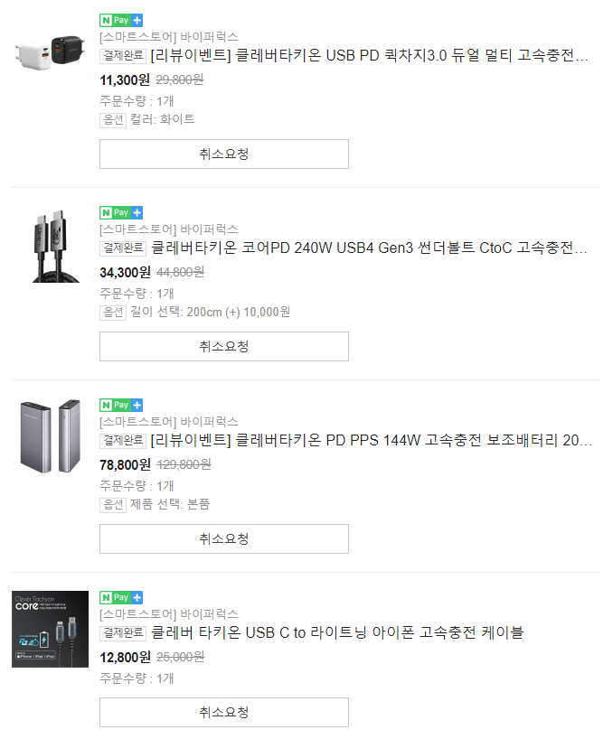 이런 저런 거 사다 보면 충전케이블을 많이 보유하게 된다. 스펙을 안 보고 구매하면 이중 지출하게 된다.