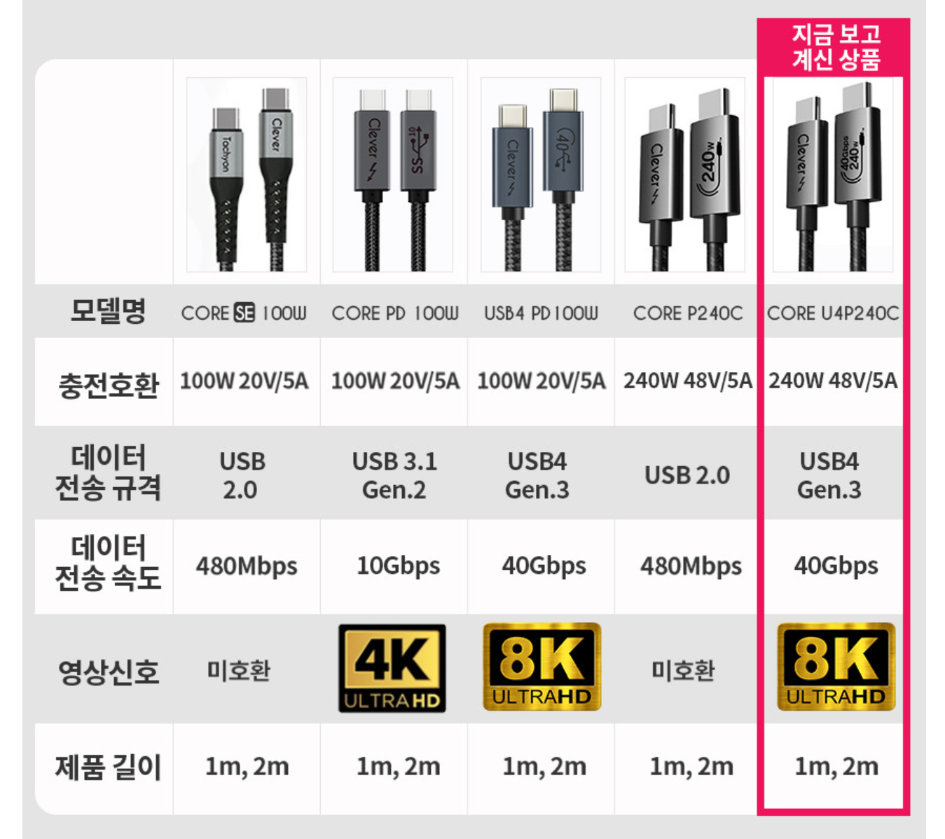 제조사 설명페이지에 케이블 구매 시 참고할 자료가 있다. 기존에는 아무 생각 없이 구매했는데 이 자료를 보면 어떤 케이블을 구매해야 할 지 명확해진다.