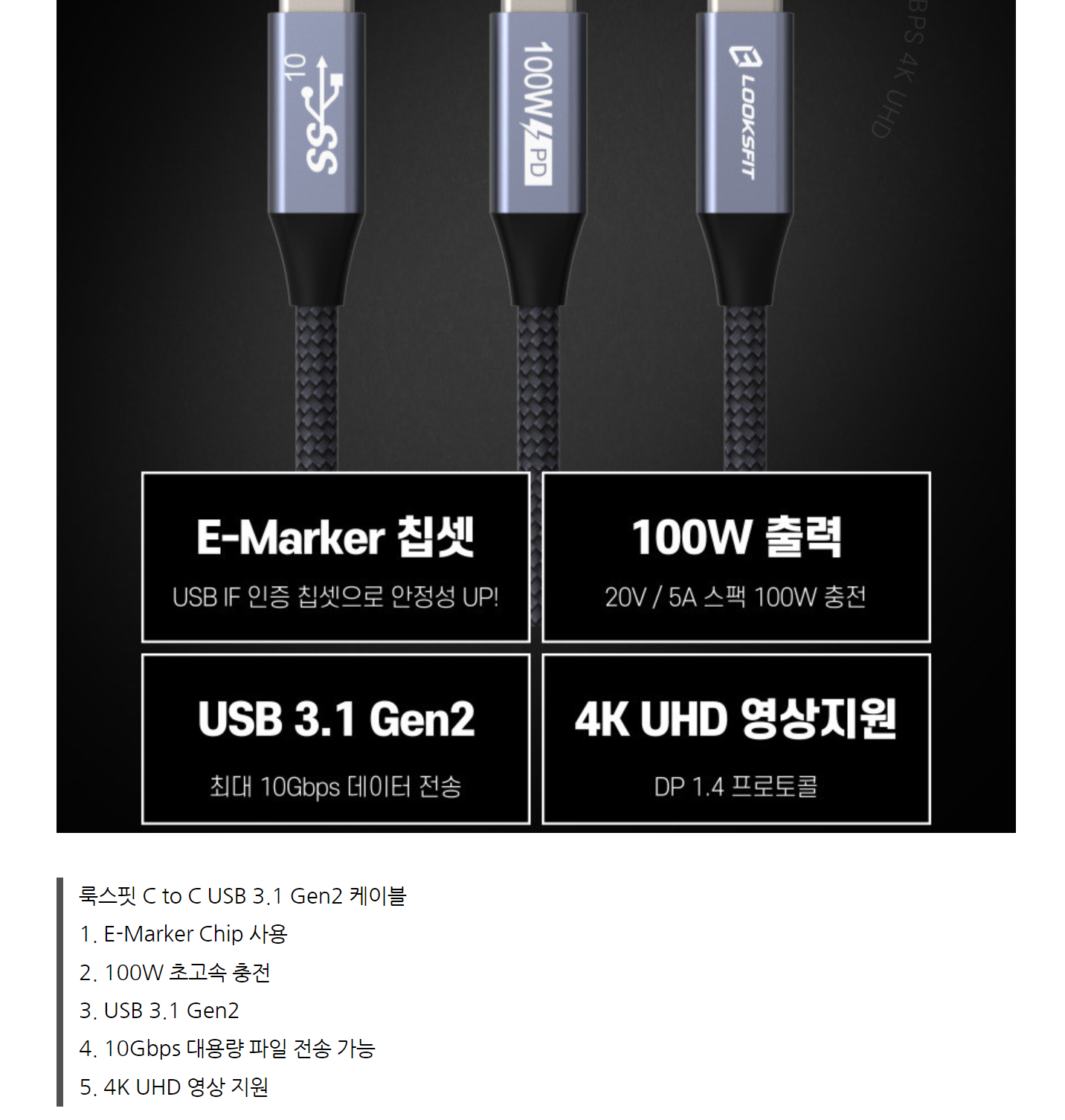 이건 룩스핏 자료다. 일반적인 사용이라면 룩스핏 케이블로 충분하다.