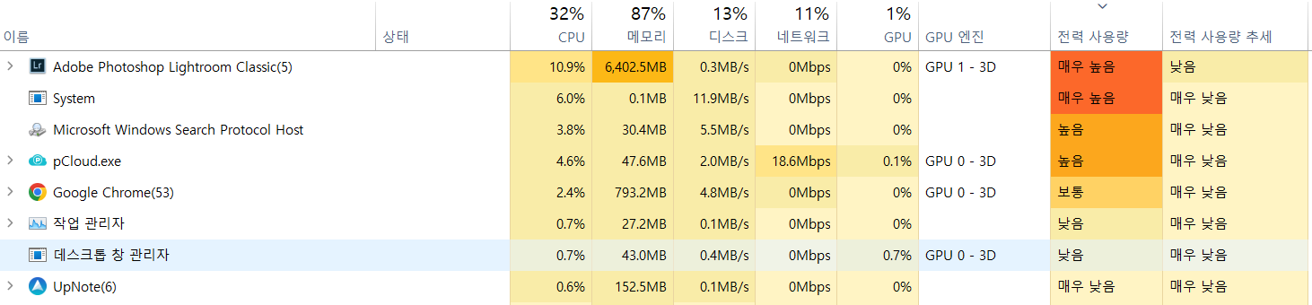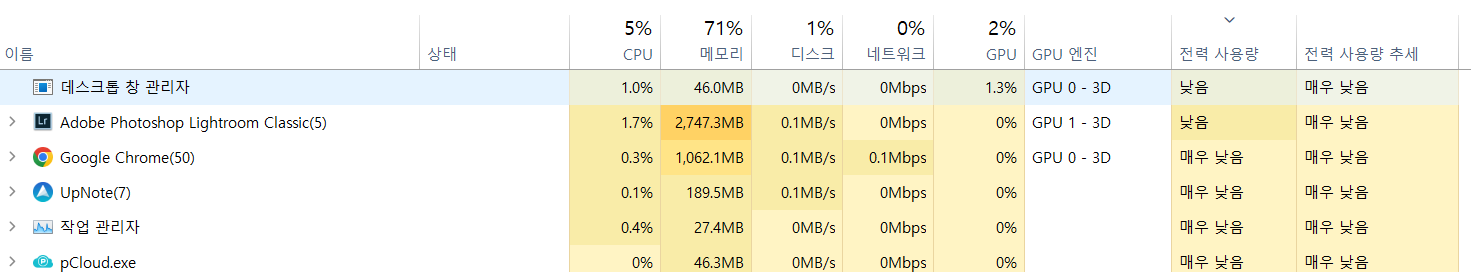 부하 발생을 위해서 라이트룸 작업을 지속적으로 했다.