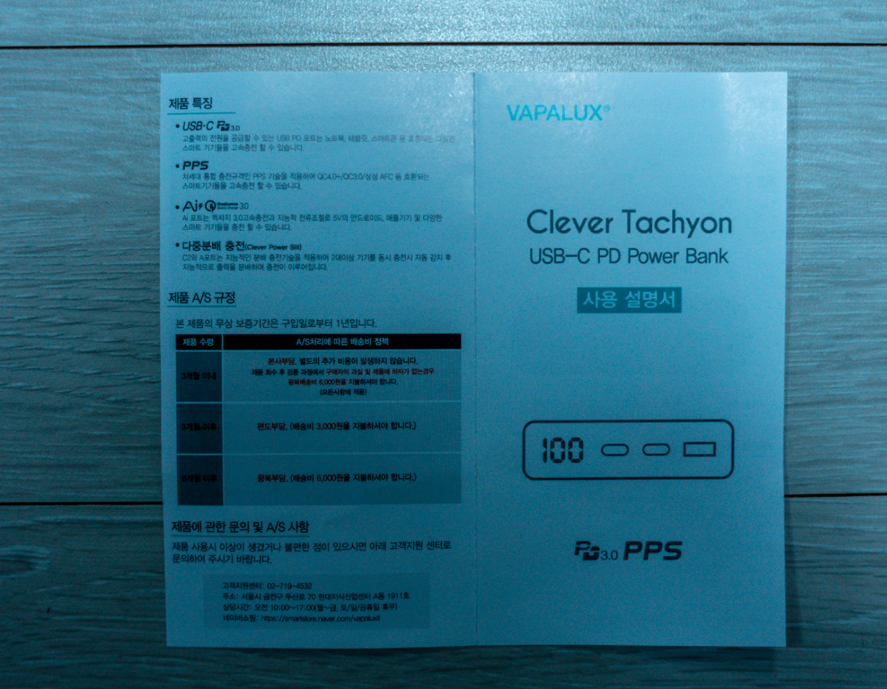 클레버타키온 보조배터리를 구매했다. 테스트를 위해서 100% 충전을 했다.
