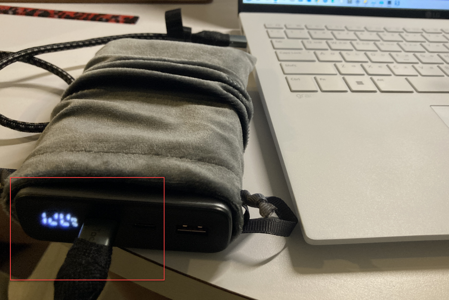 보조배터리 50% 남았을 때 노트북이 15% 정도 충전되었다. 대충 산출적으로 상황에 따라 다르겠지만 30% 정도 충전된다고 보면 될 것 같다. 실제 필요한 프로그램들을 모두 구동한 상태기 때문에 실 사용에는 문제가 없다.