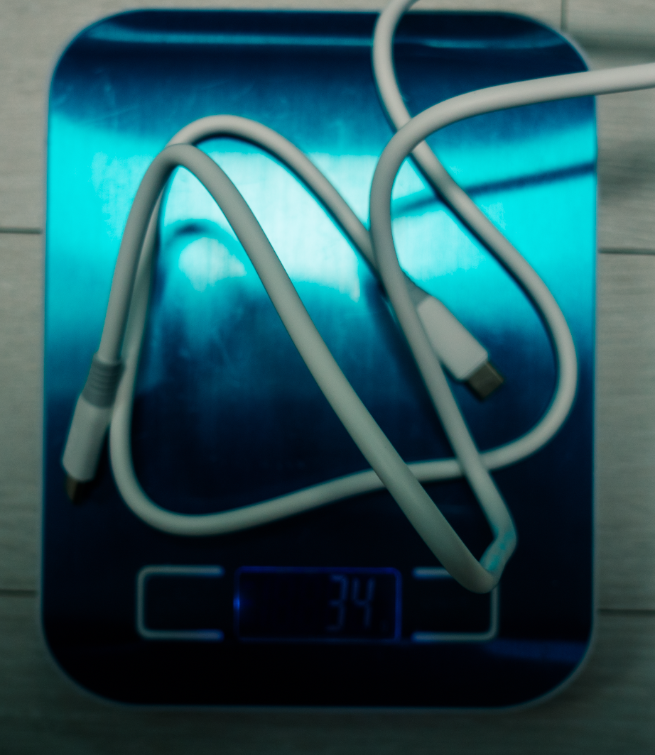 케이블의 본체도 구불구불한 재질이다. 다시 돌돌 말 때 원래 형태 유지가 안된다. 반면 룩스핏의 케이블은 원래 형태가 유지된다. 무게도 살짝 룩스핏이 가볍다. 룩스핏은 100W 지원 케이블이다. 케이블은 스페을 떠나서 사용감은 룩스핏이 더 좋아 보인다.