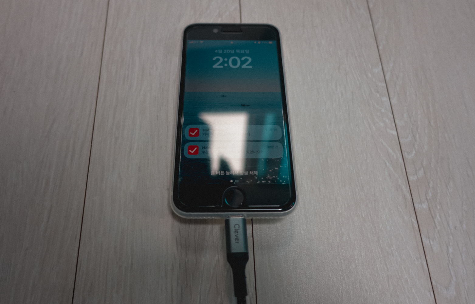 여행용 충전기로 구매한 20W 충전기는 케이블이 동봉 되어 있지 않다. 전에 구매한 플레오맥스의 동봉케이블이다. 아이폰 충전 어뎁터가 있어서 케이블 하나만 준비하면 되기 때문에 편하다. 실제 충전도 잘 되는 것을 확인 했다.