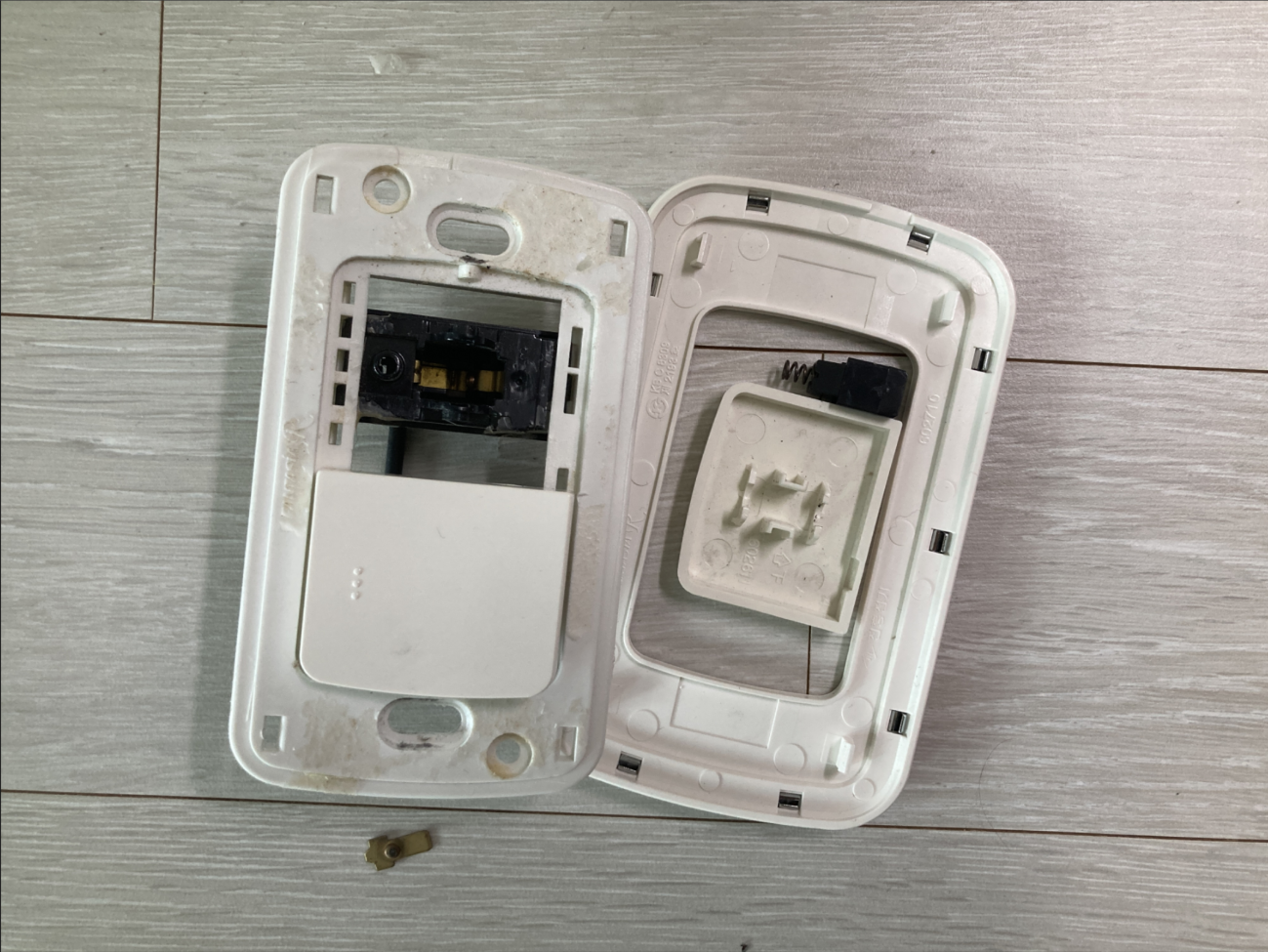망가진 스위치, 사용 시 무리하게 힘을 주면 내부의 플라스틱이 깨진다.
