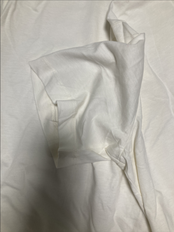 목의 라운드는 좁고 타이트하고 아래 부분은 루즈핏이다. 그래서 복부에 살이 있다면 안 이쁘게 떨어진다.