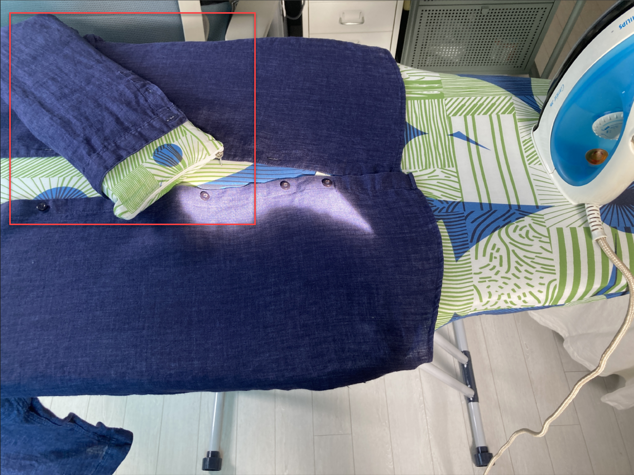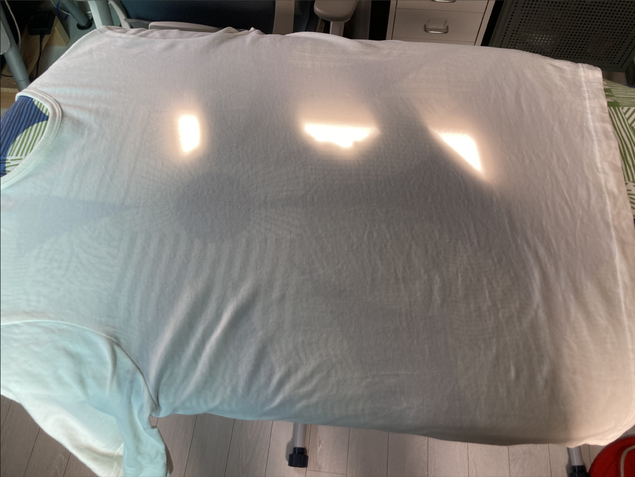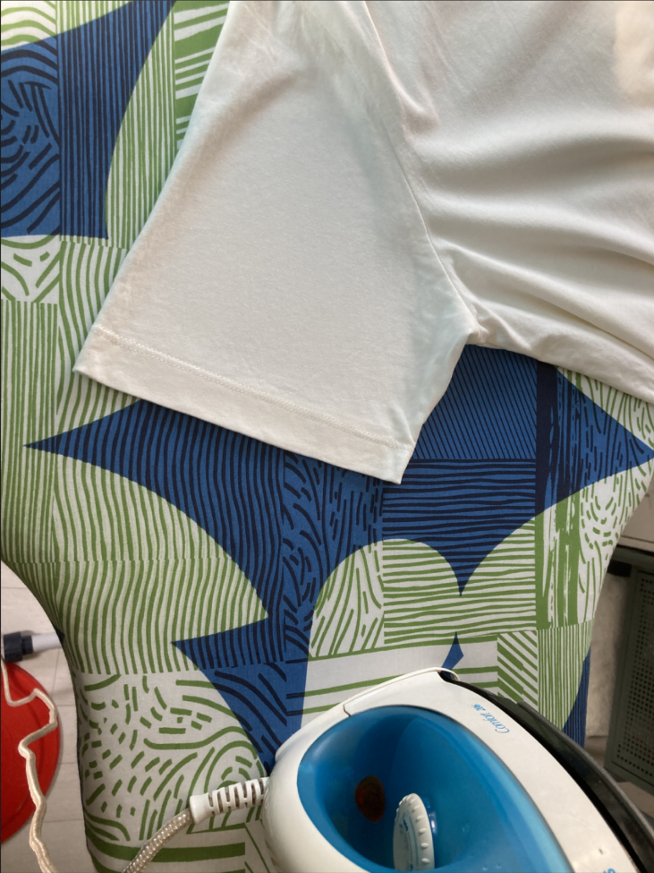 일반 라운드 티도 입혀서 다리면 편하다. 짧은 팔은 보조 다리미판으로 들어가지 않는다. 그냥 바닥에 두고 대충 펴주면 된다.