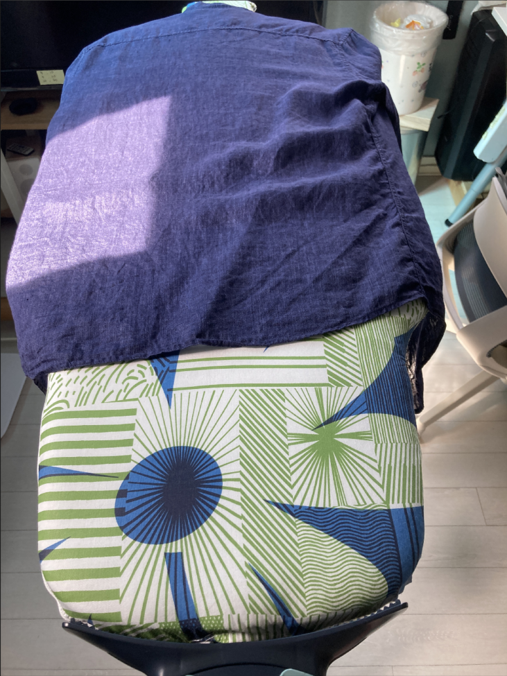마 재질이기 때문에 뜨거운 열기로 다려야 한다고 다리미에 명시되어 있다. 원단이 상할까 봐 실크 모드로 다렸다.
