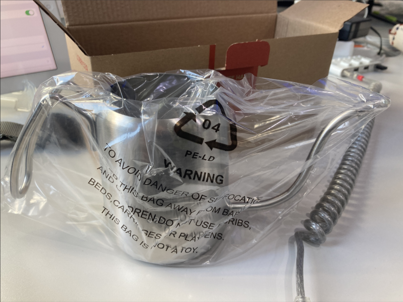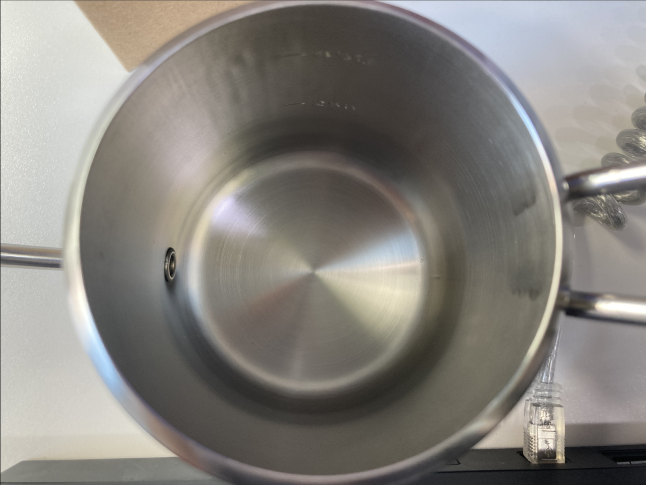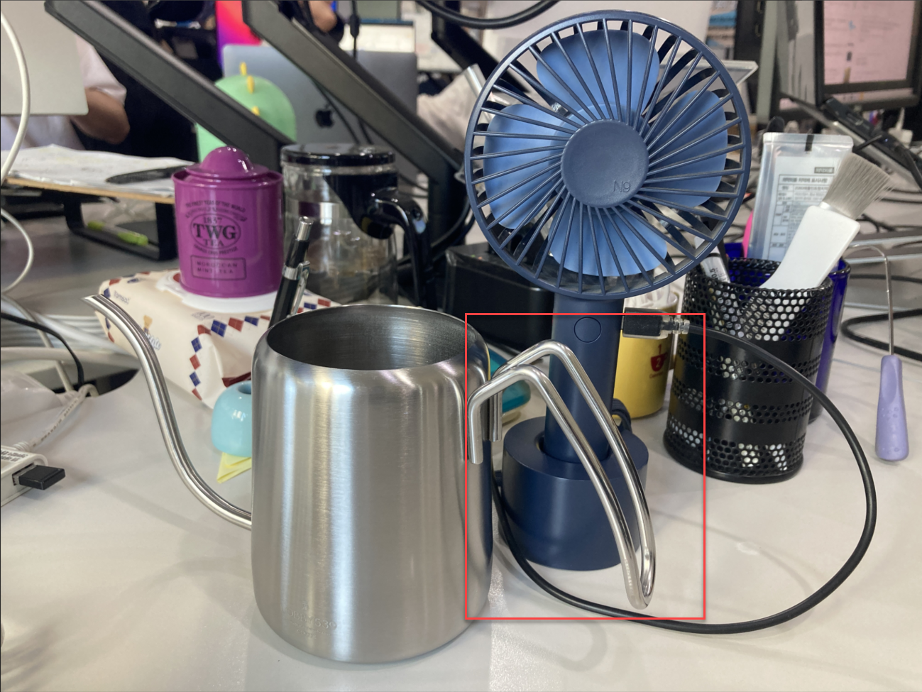 실제 사용해 보니 손잡이 말고 전체적으로 뜨거워 진다. 그래서 뜨거운 물을 담을 때 조심해야 한다. 회사의 졍수기를 이용하기 때문에 따로 전기주전자가 필요치 않아 이 드립 주전자를 구매하게 된 것이다.  가정용은 비슷한 구조에 하단에 물을 끓일 수 있는 부분이 있는 전기주전자를 사용 중이다.