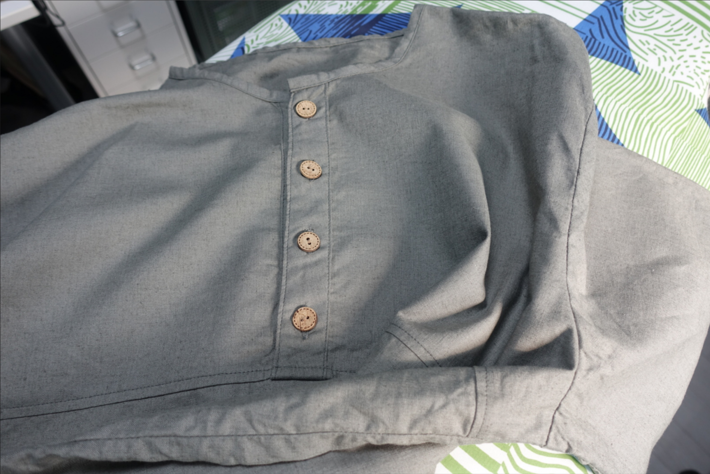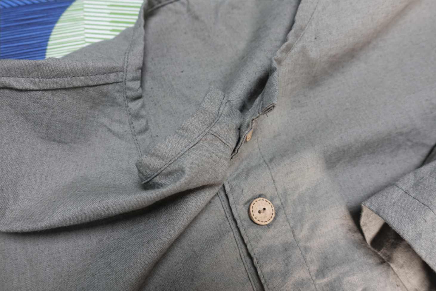 실제 입고 취침을 해보니 윗 단추 하나는 풀고 자는 게 더 편했다.