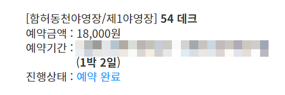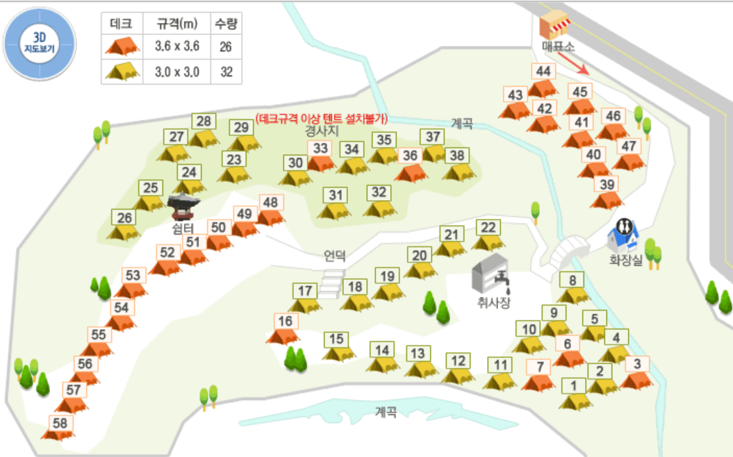 예약 할 때 각 데크의 위치와 현장 상태를 유튜브와 블로그 글을 참고해서 54번으로 정했었다.