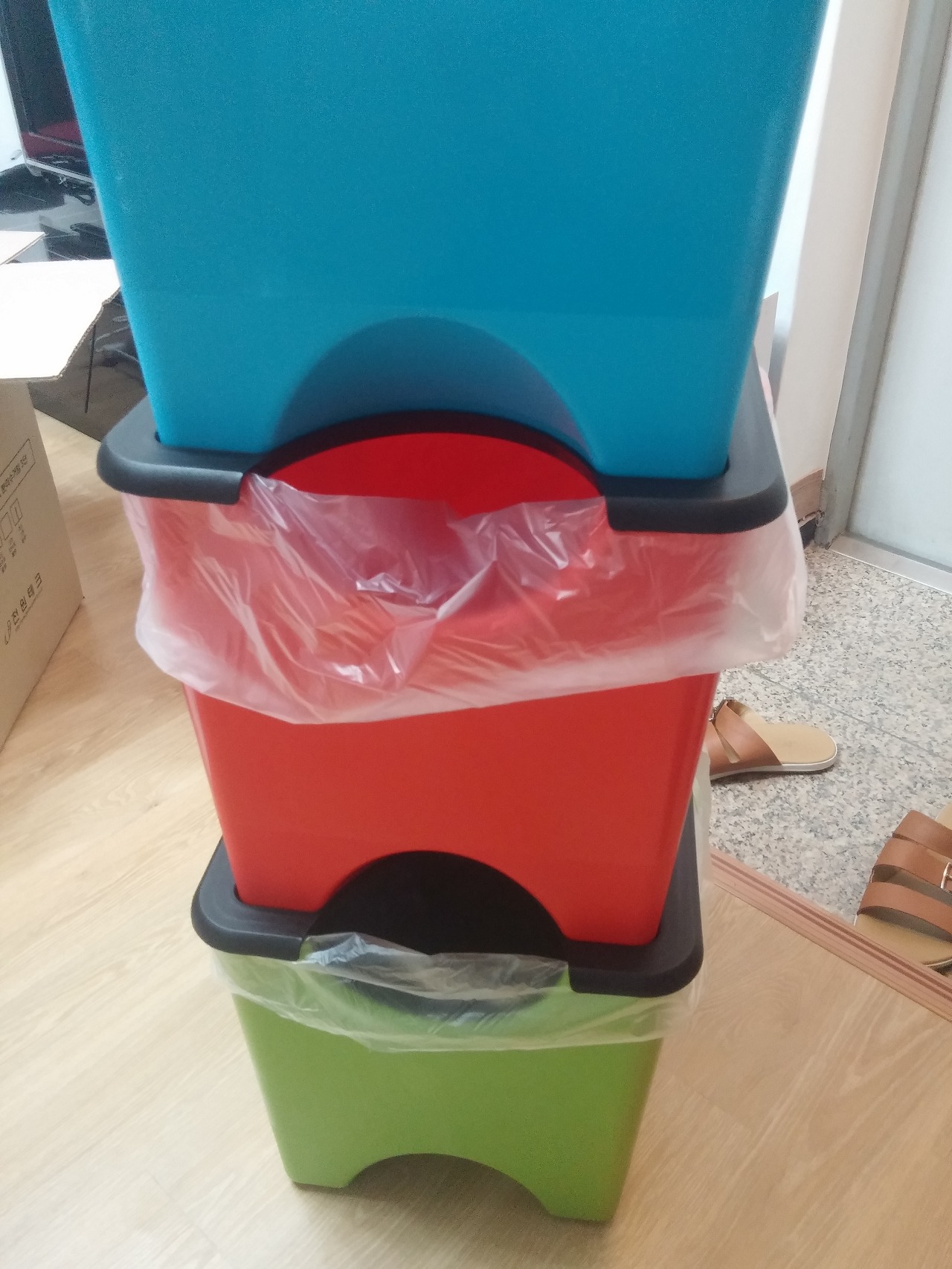 처음에는 작은 분리수거함을 사용 했다. 약 30리터 용량의 제품이다.