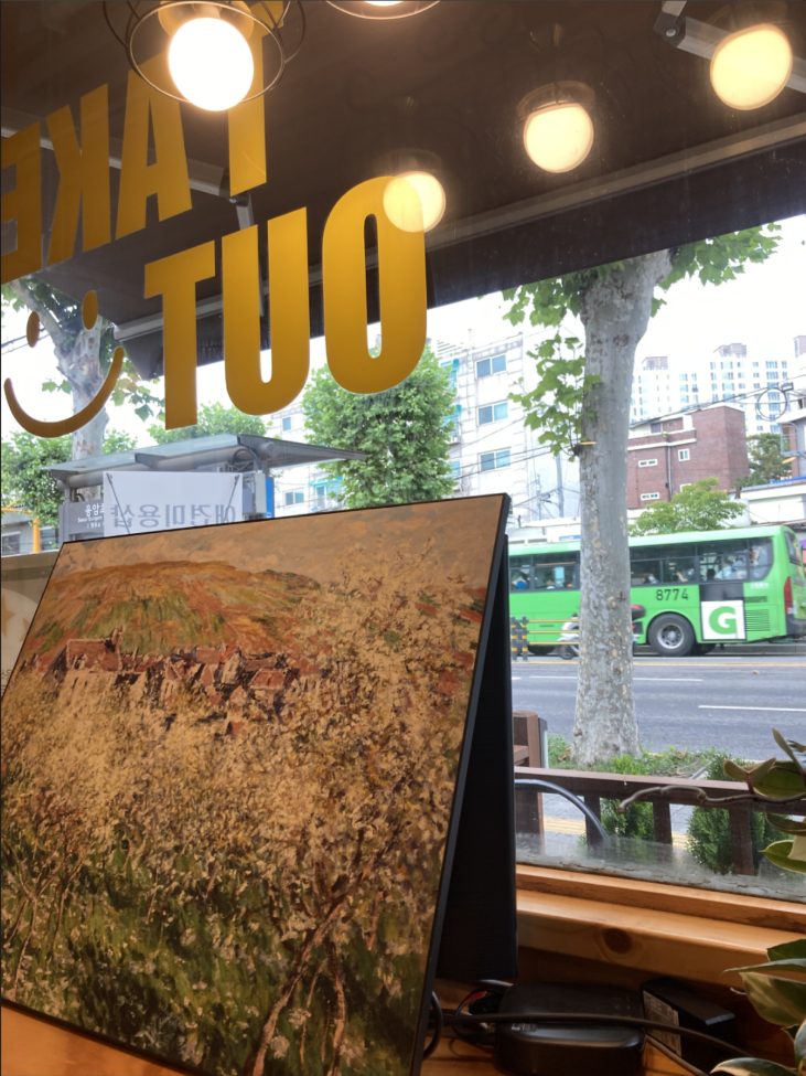 횡단보도를 건너면 바로 카페가 있고 좀 밑으로 내려가면 2개의 카페가 더 있다.