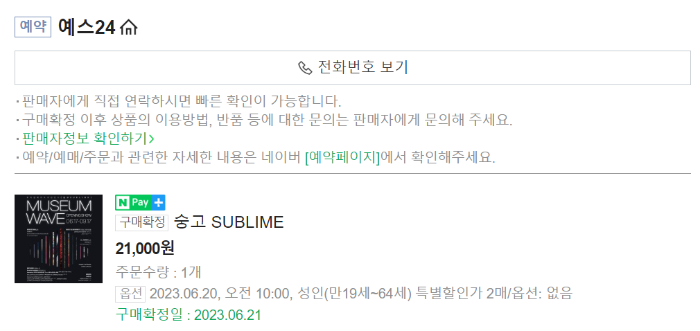 뮤지엄웨이브 티켓팅: https://www.museumwave.com/TICKETING