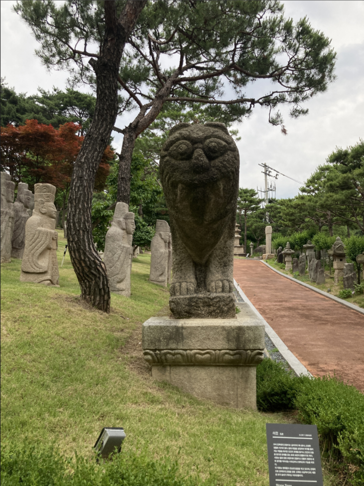 뮤지엄웨이브 옥상과 뒤편 산책로가 연결 되어 있다. 이 산책로에 옛돌이라고 해서 여기 저기 석상을 모아 둔 모습을 볼 수 있다. 갑갑하고 여백의 미가 없다.