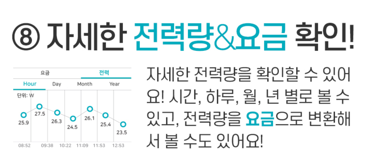 전력량 사용량은 자체 앱에서 무료로 볼 수 있다. 부가 서비스가 많은데 그것은 프리미엄서비스로 별도 요금을 내야 한다.