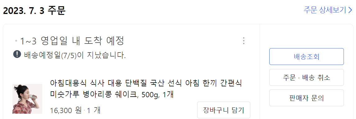 구매한 물품이 금일 도착해서 아직 음용 전이다. 선식과 함께 타서 마실 예정이다.