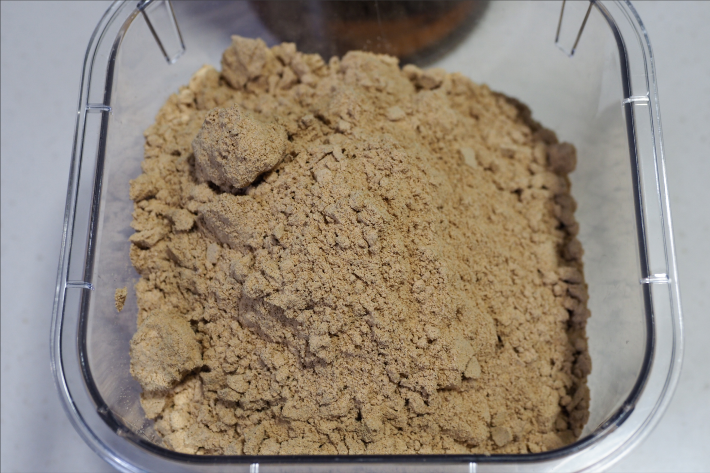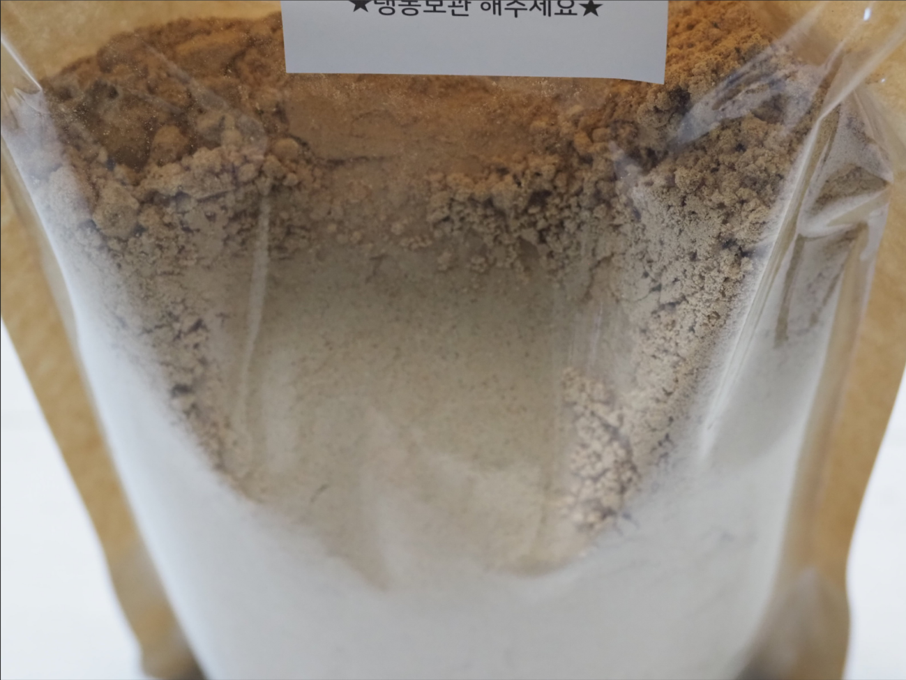 고운 분말로 미숫가루처럼 떡지지 않고 물에 상당히 잘 녹는다.