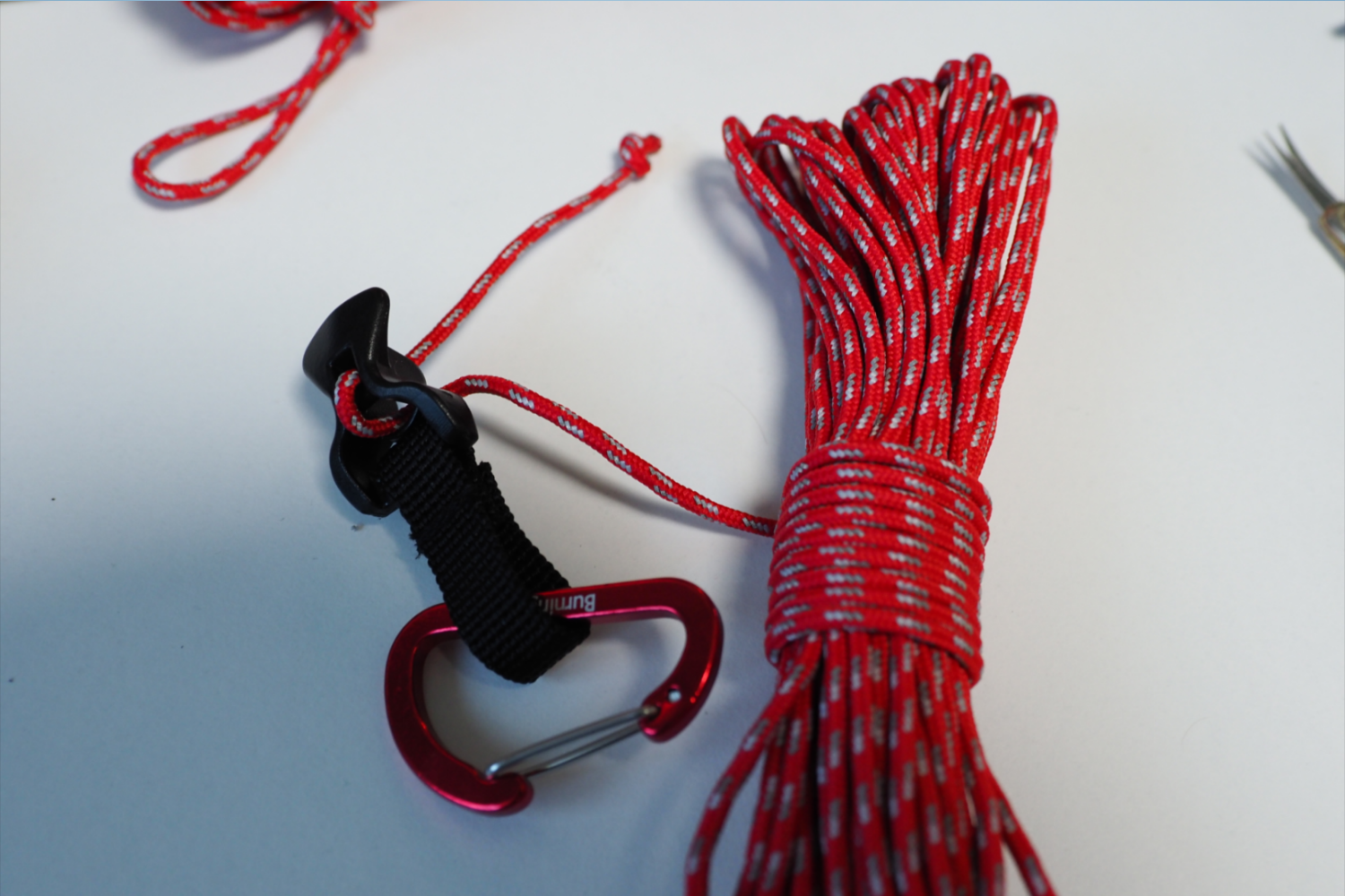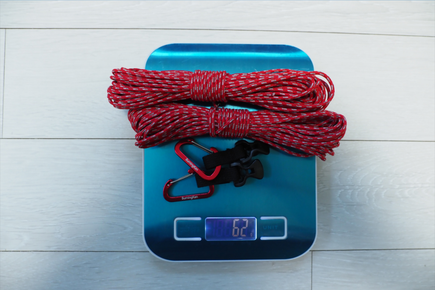 스트링시스템은 무게가 5그램이다. 만져보니 상당히 작다. 카라비너도 작은 사이즈다. 텐트 보다는 경량 실타프에 사용하면 적당할 것 같다.