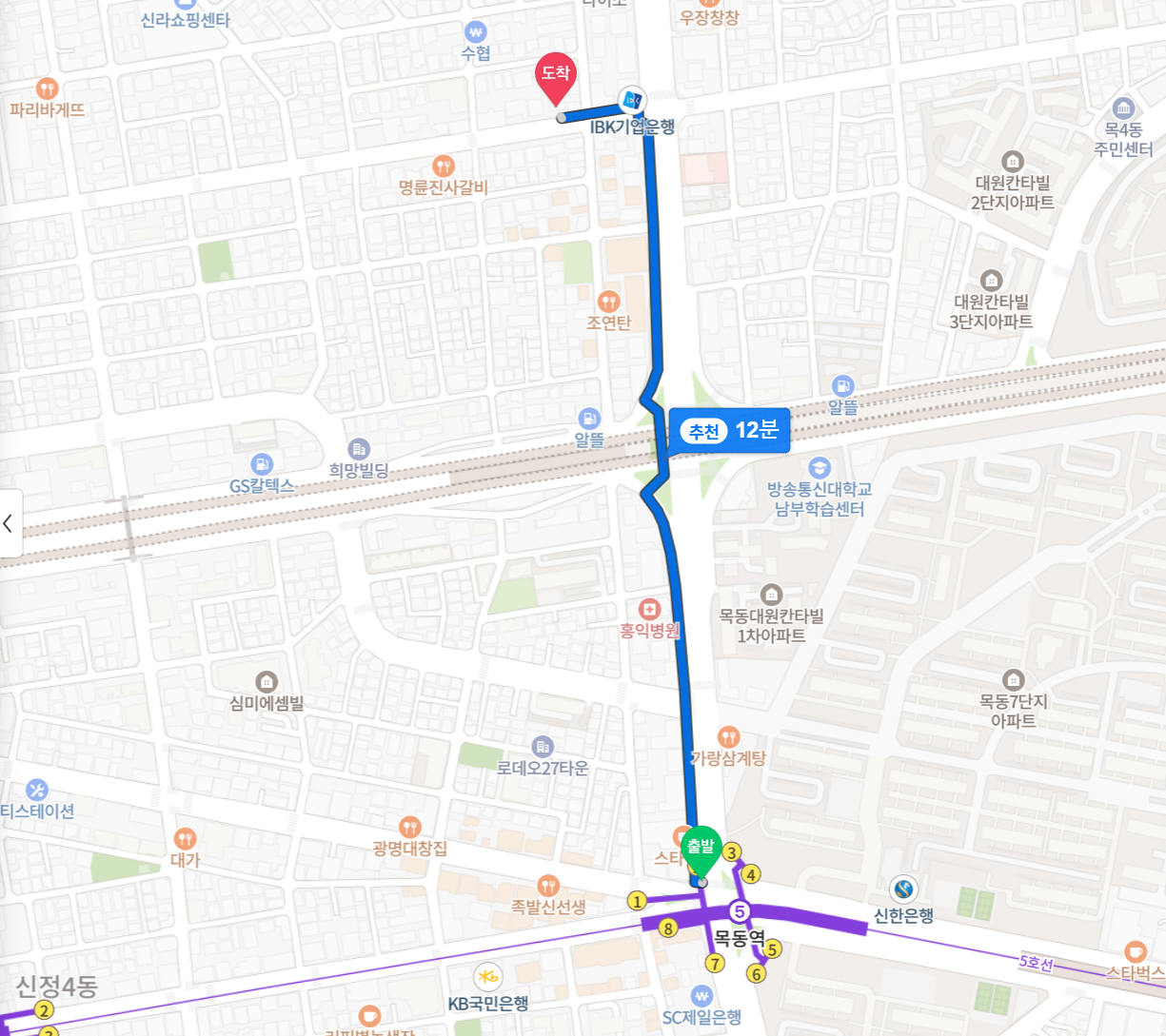 - 목동역 2번 출구에서 도보로 12분 정도 소요