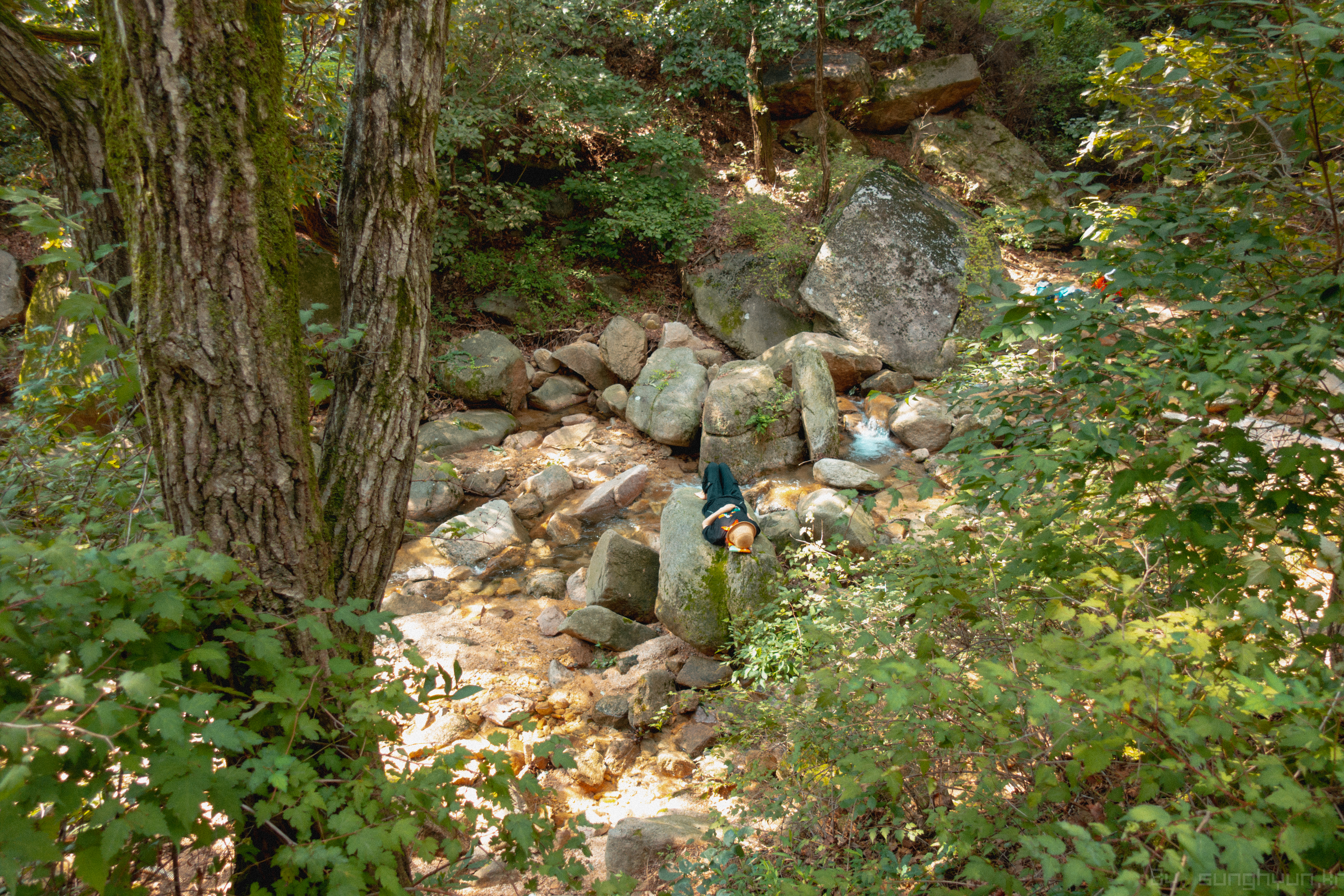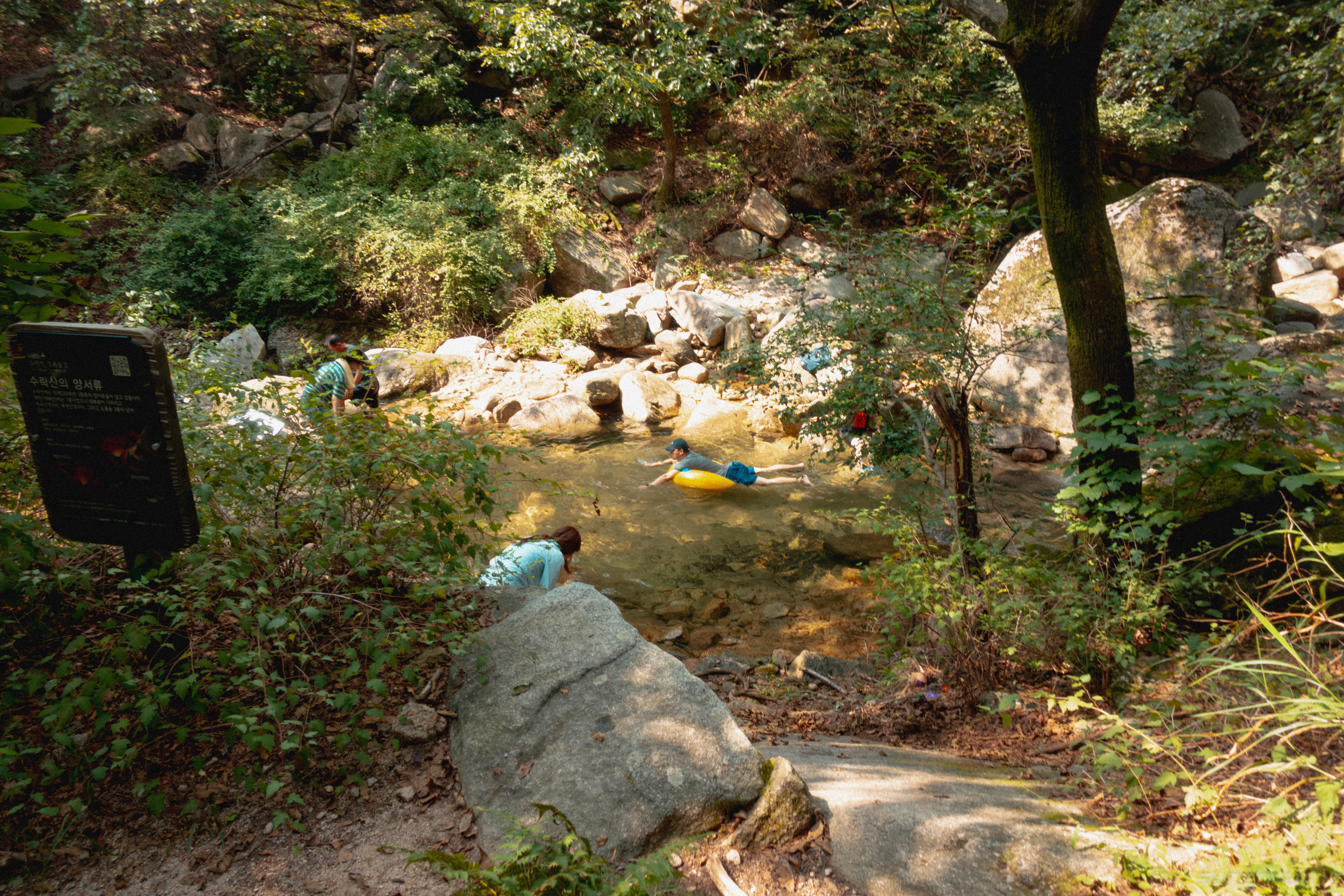 계곡에 물놀이 포인트가 상당히 많았다. 대충 고도 300 미터 이하 부터 계속 이어진다.