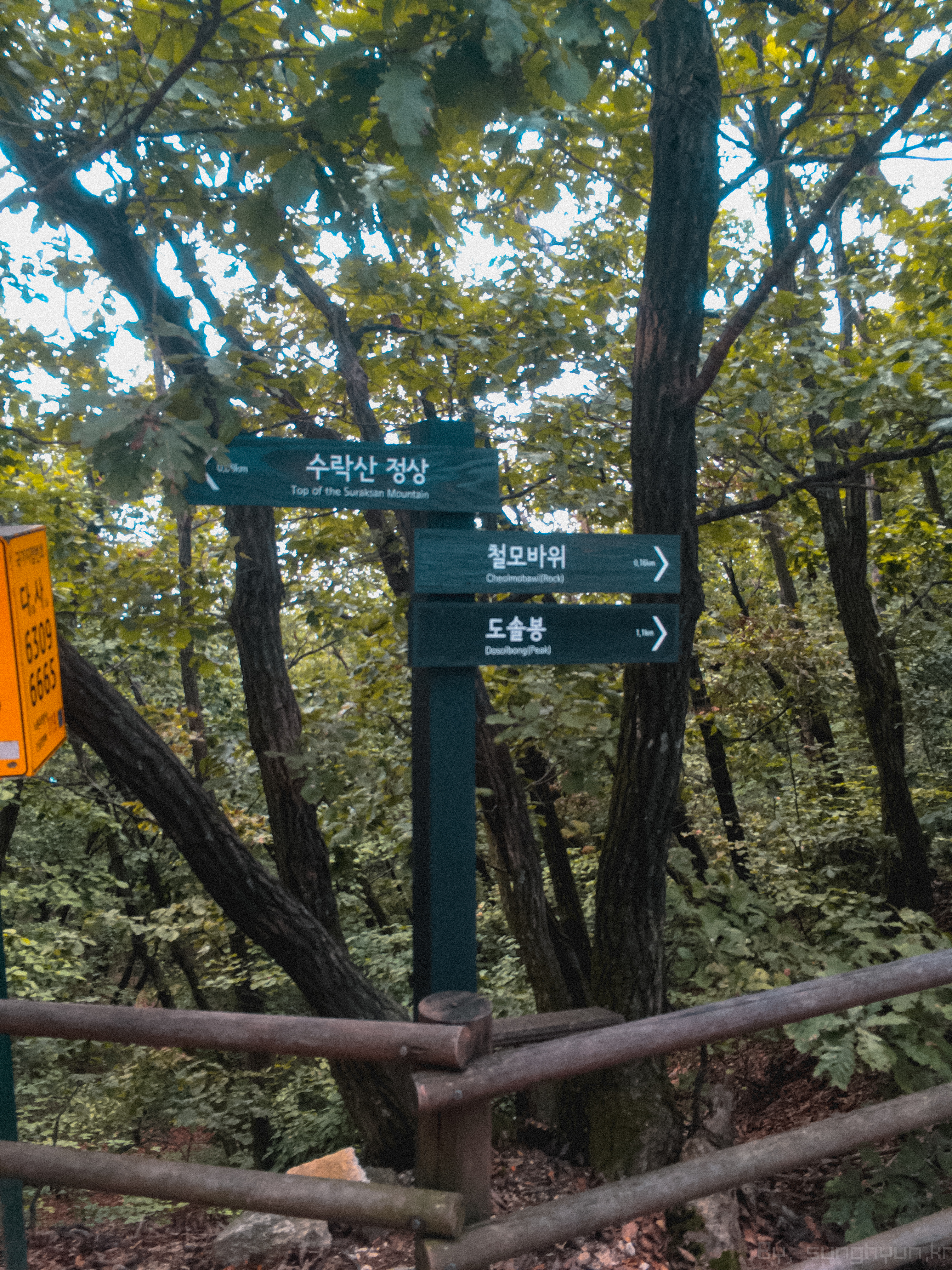 하산을 하다가 다시 위로 올가가게 된다. 데크 계단 끝에 우측에 쇠줄과 기둥으로 조금 오르는 부분이 나온다.