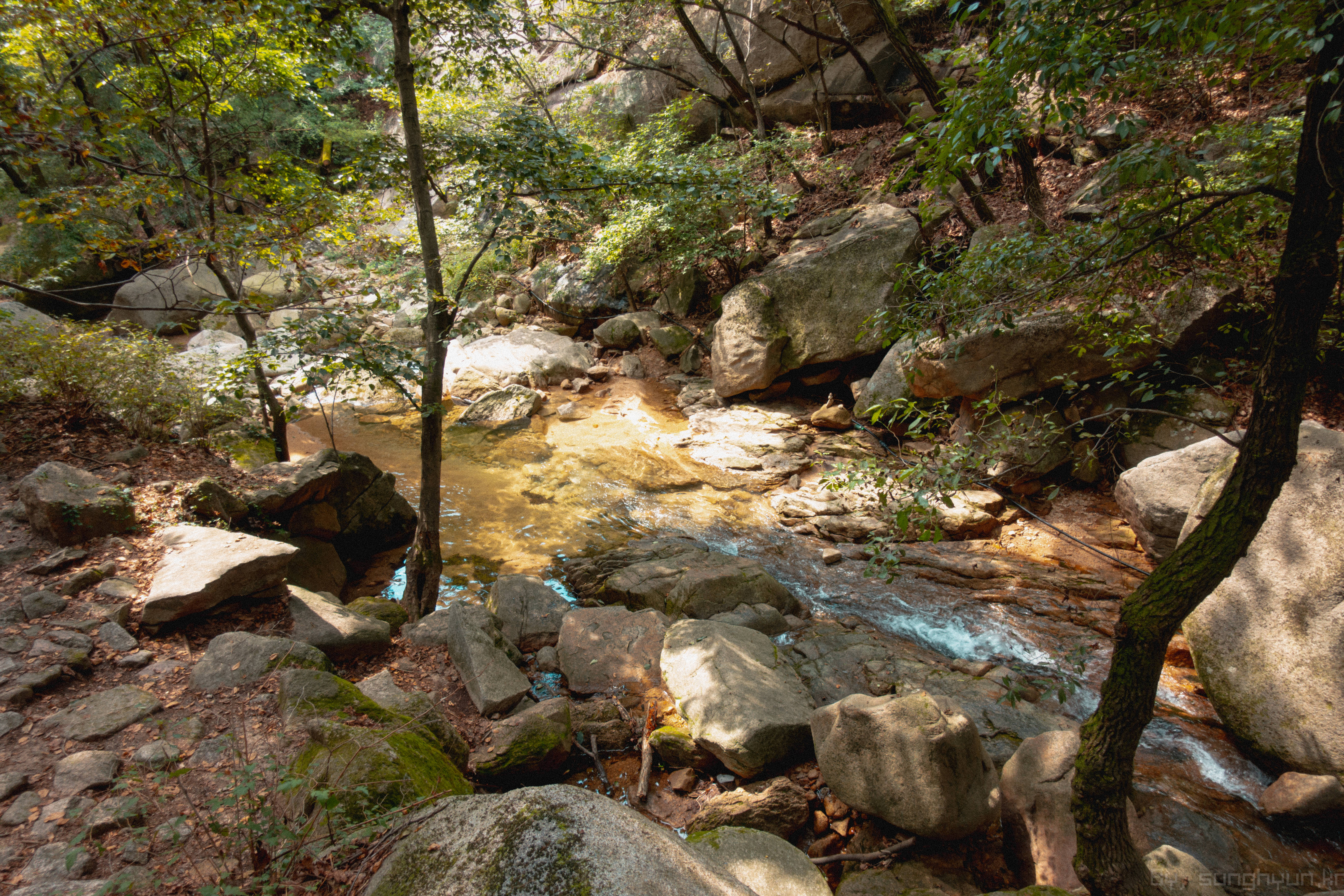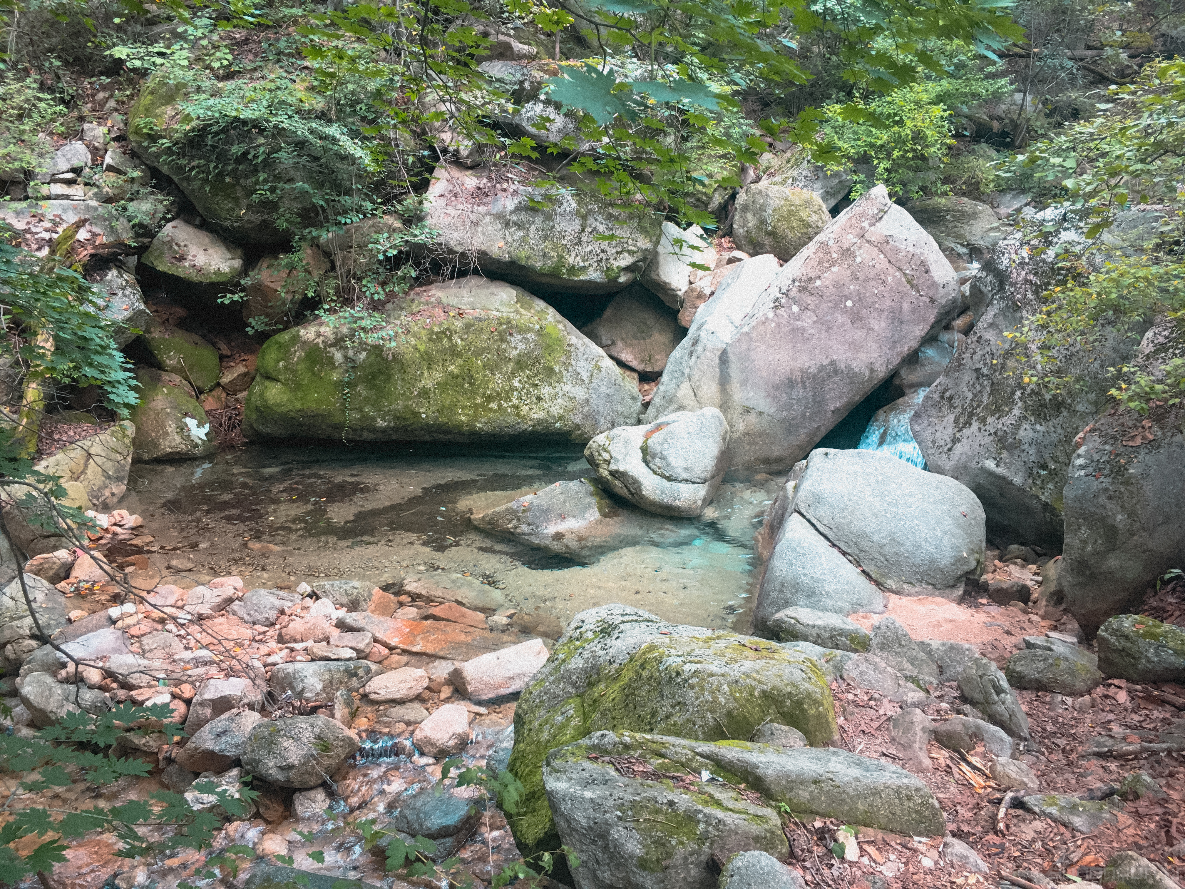 하산 하다 보면 이런 계곡에 수량이 모이는 장소가 곳곳에 있다.