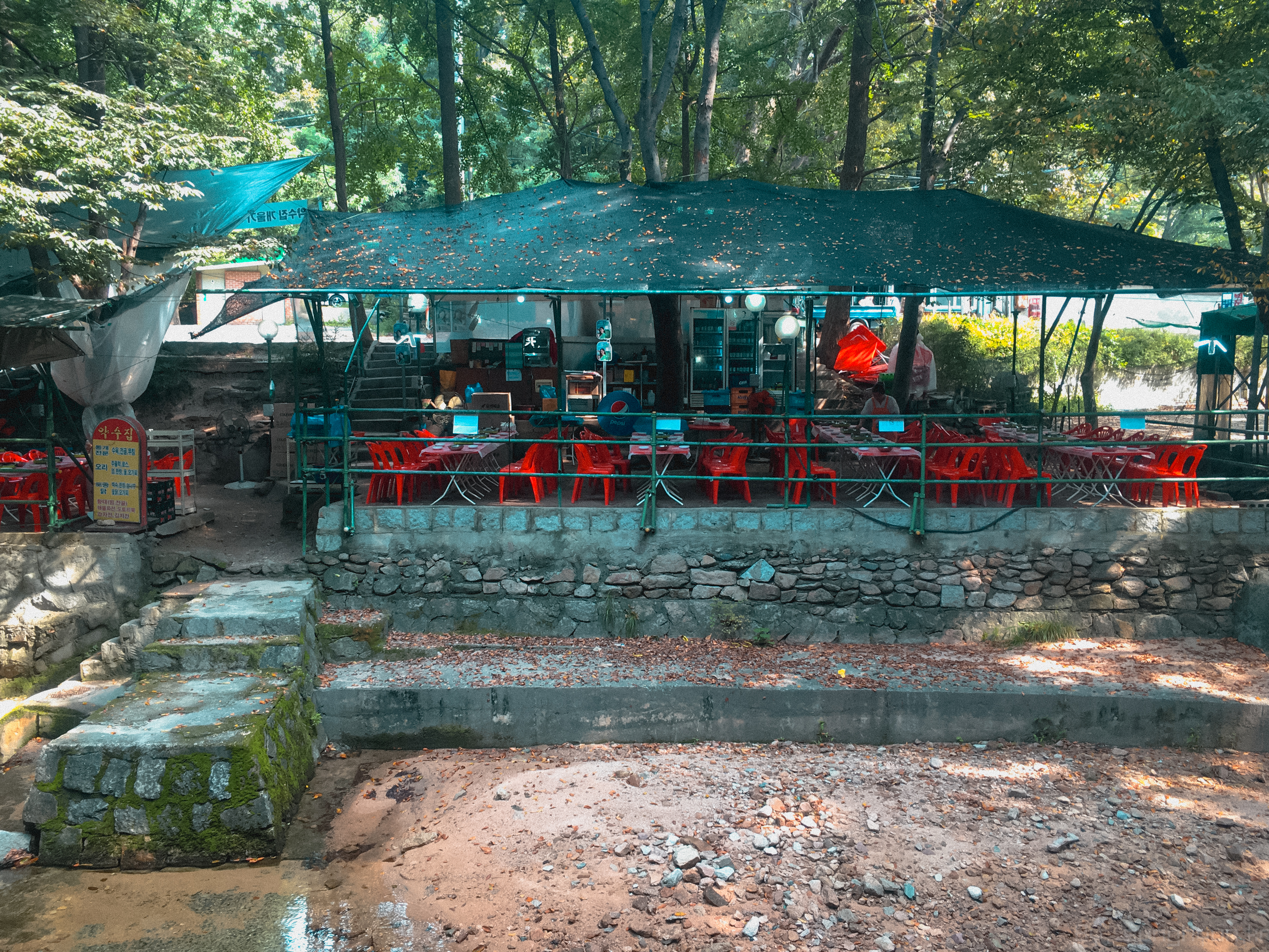 계곡 건너편에는 음식점들이 즐비 했는데, 하산 시 보니 식사하는 사람들이 많았다. 접근 시 등산로 입구까지 거의 내려와야 해서 가지 않았다.