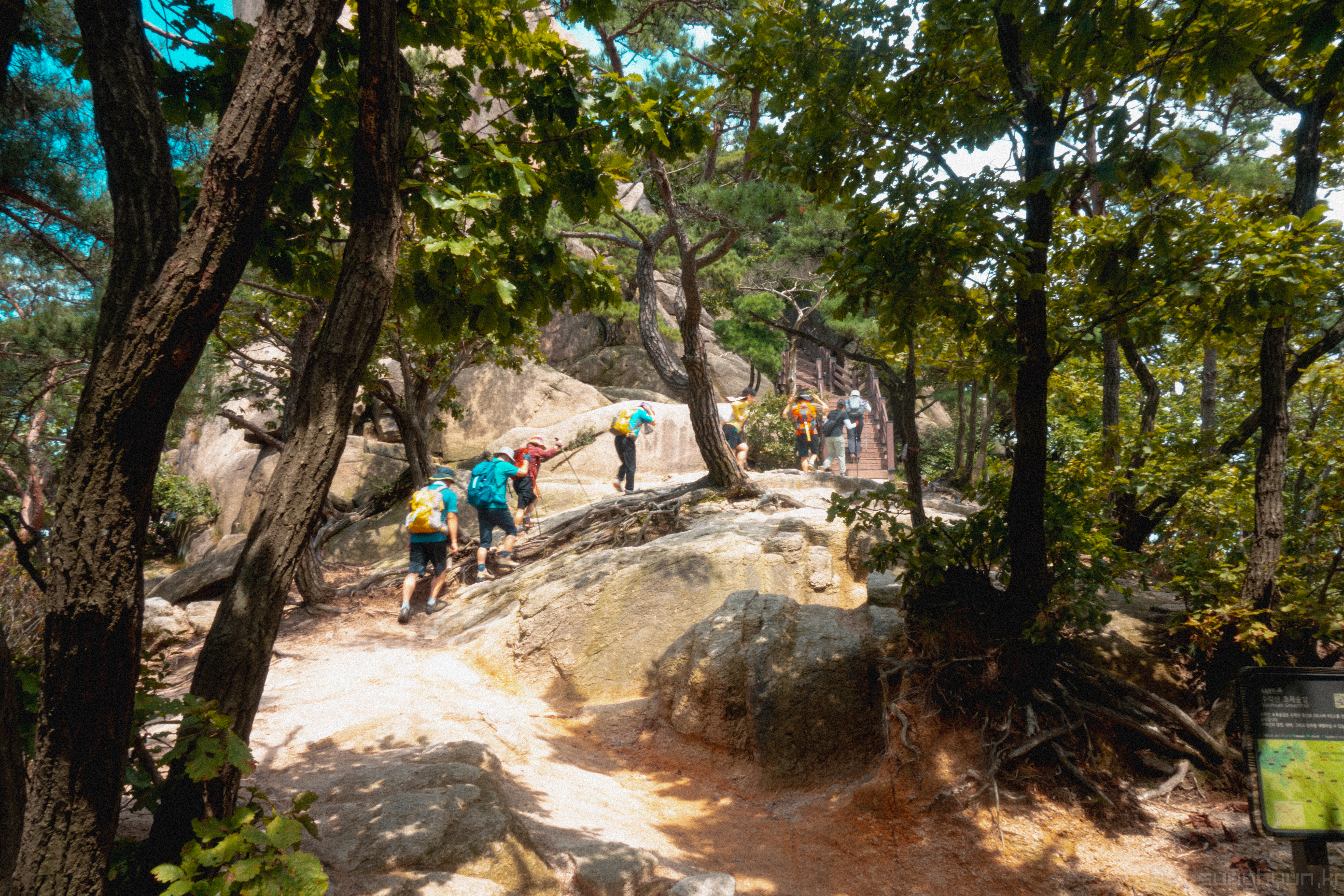 이런 길을 나름 길게 가야한다. 끝이라고 생각하면 또 나오고 또 나온다. 어떤 커플은 도중에 중단하고 멈추는 것을 봤다. 나도 도중에 중단할 뻔 했다. 사전 지식이 없으니..... 도중에 하산 하는 분들에게 얼마나 남았는지 계속 물었다.