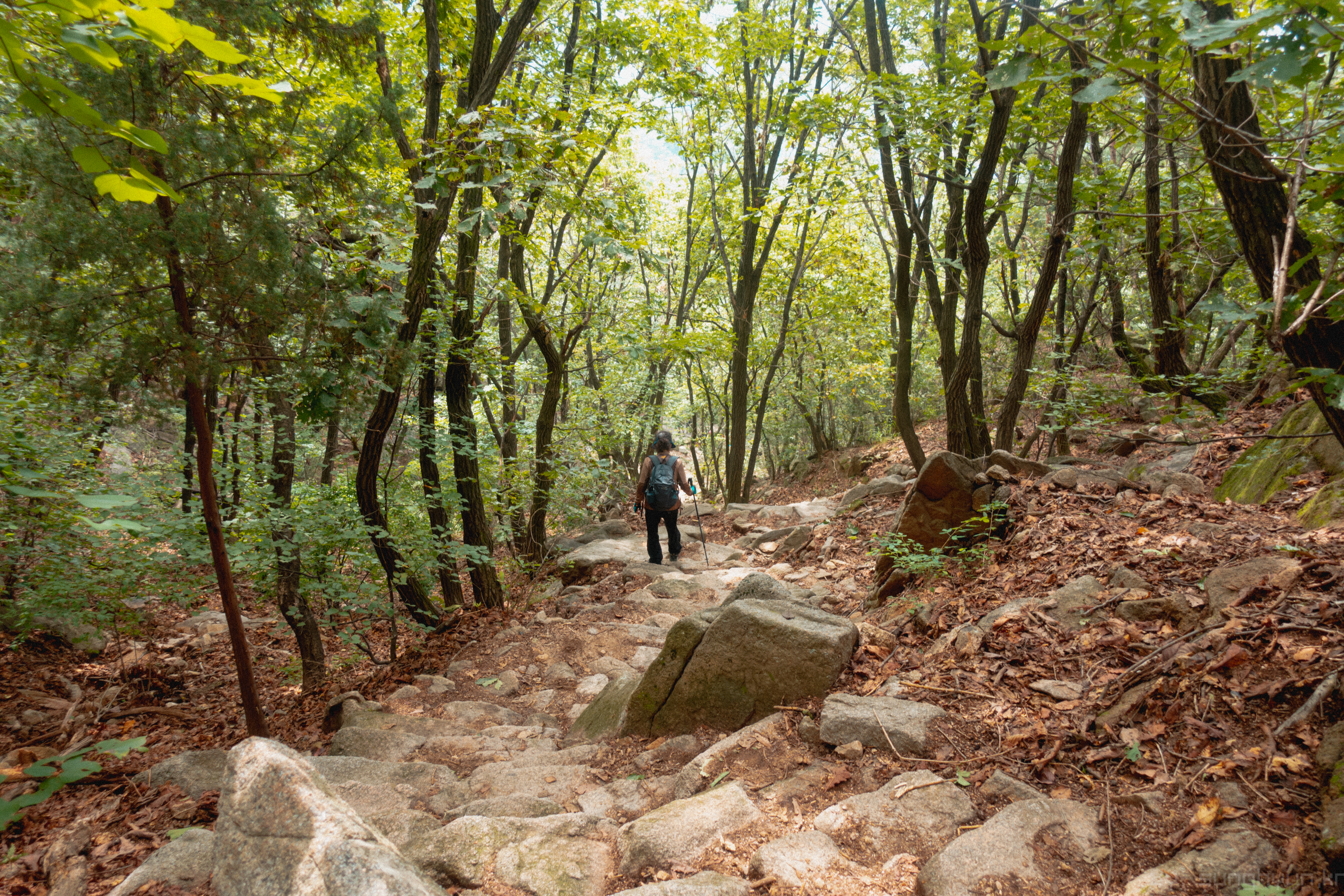 어떤 아주머니가 천천히 깔딱기점으로 하산하는 모습이다. 수락산 산행을 하면서 체력과 담이 좋은 아줌마들을 많이 봤다.