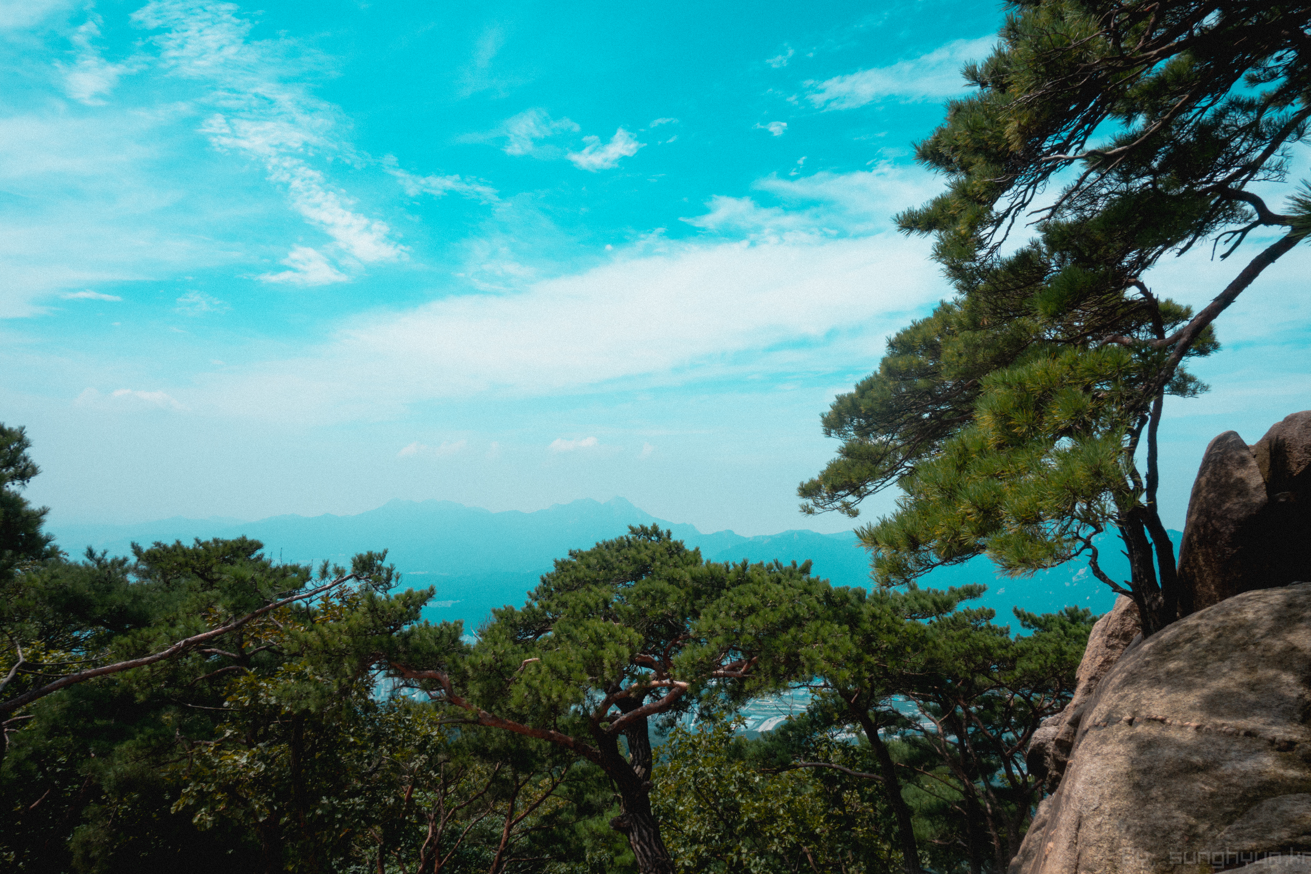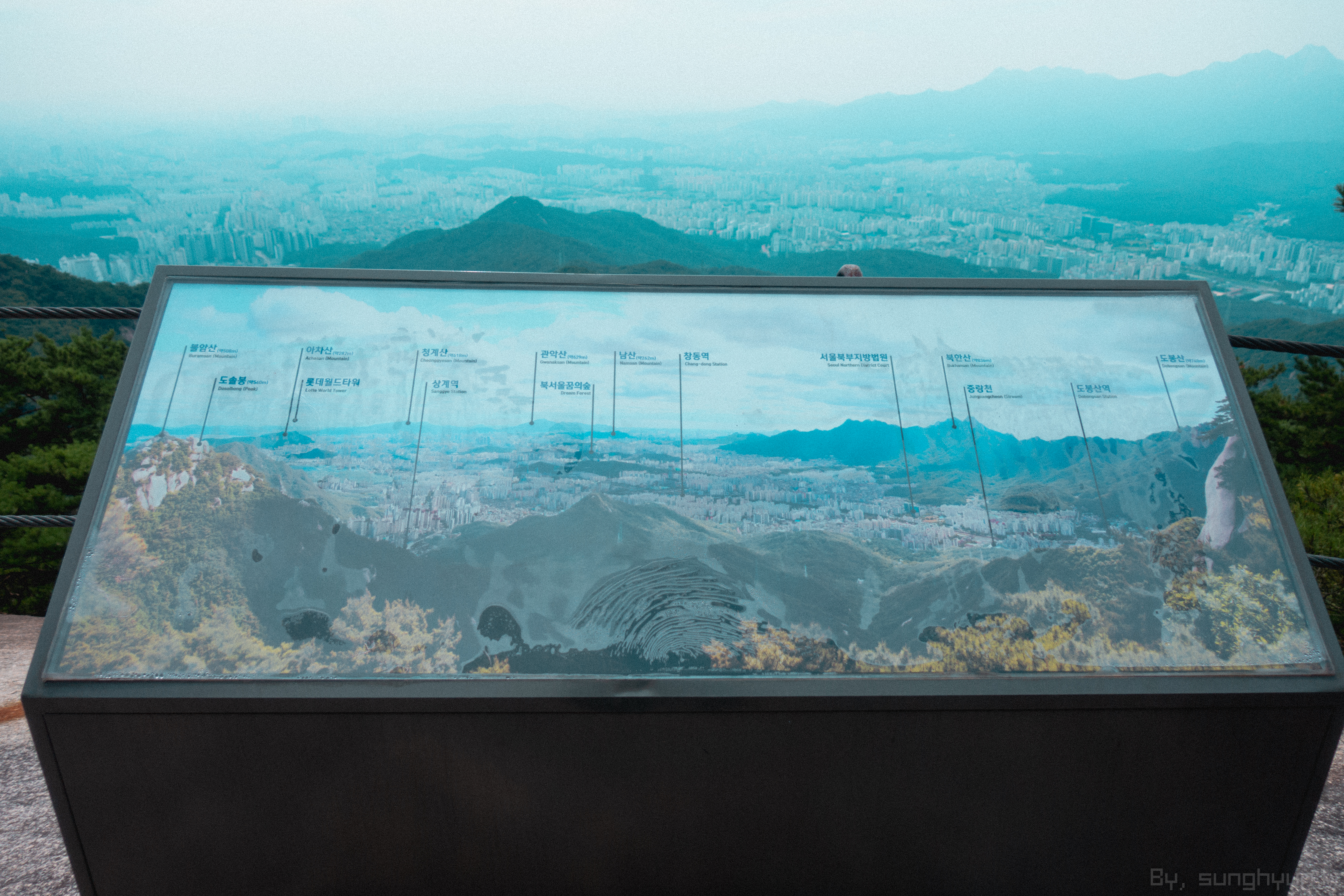 수락산이 서울 북부에 있기 때문에 남쪽을 조망하면 서울의 주요 포인트가 보인다. 정상 말고 하산 할 때 전망대가 따로 마련되어 있다.