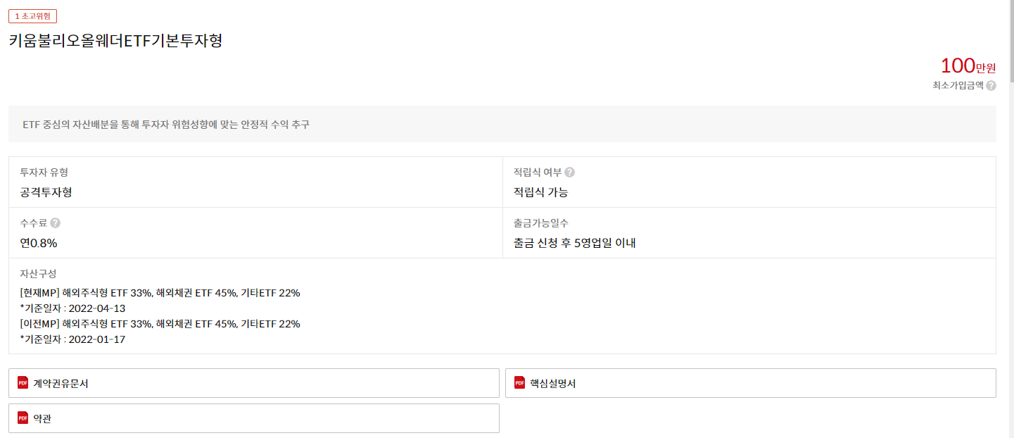 키움불리오올웨더ETF기본투자형 4년 정도 투자 후기