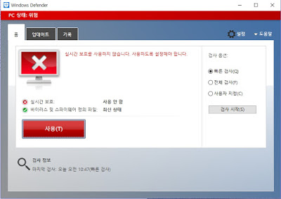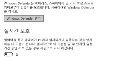 대량의 파일을 이동 및 복사하기 위해선 반드시 윈도우 디펜서를 실시간감시를 비활성화 해야합니다.