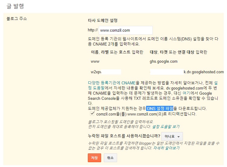 구글블로그 서비스 블로거닷컴 타사도메인설정 방법 및 주의사항
