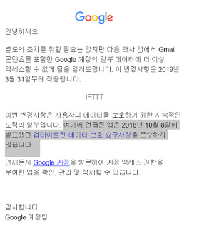 상반되게 금일 구글에서 온 메일입니다. 구글은 계정 정보 보안에 나름 신경을 쓰는 느낌을 주고 있네요.
